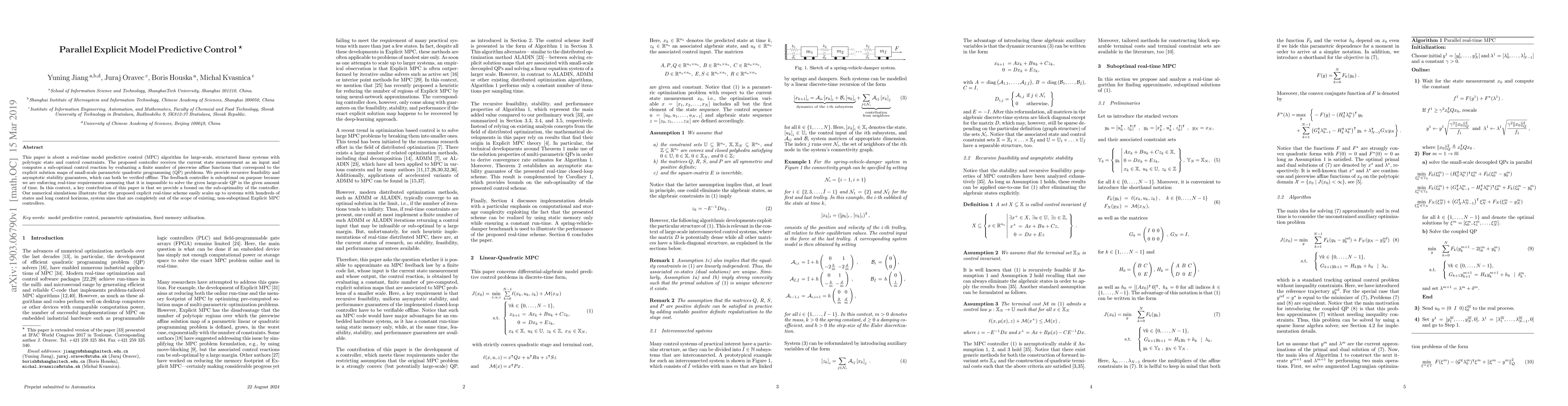 This paper is about a real-time model predictive control (MPC) algorithm for large-scale, structured linear systems with polytopic state and control constraints. The proposed controller receives the current state measurement as an input and computes a sub-optimal control reaction by evaluating a finite number of piecewise affine functions that correspond to the explicit solution maps of small-scale parametric quadratic programming (QP) problems. We provide recursive feasibility and asymptotic stability guarantees, which can both be verified offline. The feedback controller is suboptimal on purpose because we are enforcing real-time requirements assuming that it is impossible to solve the given large-scale QP in the given amount of time. In this context, a key contribution of this paper is that we provide a bound on the sub-optimality of the controller. Our numerical simulations illustrate that the proposed explicit real-time scheme easily scales up to systems with hundreds of states and long control horizons, system sizes that are completely out of the scope of existing, non-suboptimal Explicit MPC controllers.
