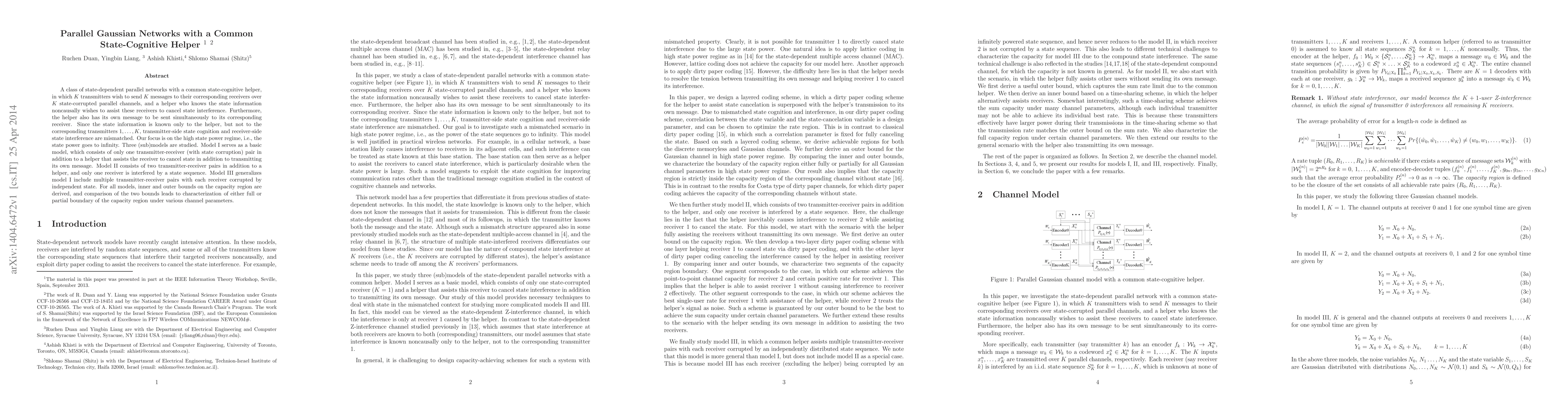 A class of state-dependent parallel networks with a common state-cognitive helper, in which $K$ transmitters wish to send $K$ messages to their corresponding receivers over $K$ state-corrupted parallel channels, and a helper who knows the state information noncausally wishes to assist these receivers to cancel state interference. Furthermore, the helper also has its own message to be sent simultaneously to its corresponding receiver. Since the state information is known only to the helper, but not to the corresponding transmitters $1,\dots,K$, transmitter-side state cognition and receiver-side state interference are mismatched. Our focus is on the high state power regime, i.e., the state power goes to infinity. Three (sub)models are studied. Model I serves as a basic model, which consists of only one transmitter-receiver (with state corruption) pair in addition to a helper that assists the receiver to cancel state in addition to transmitting its own message. Model II consists of two transmitter-receiver pairs in addition to a helper, and only one receiver is interfered by a state sequence. Model III generalizes model I include multiple transmitter-receiver pairs with each receiver corrupted by independent state. For all models, inner and outer bounds on the capacity region are derived, and comparison of the two bounds leads to characterization of either full or partial boundary of the capacity region under various channel parameters.