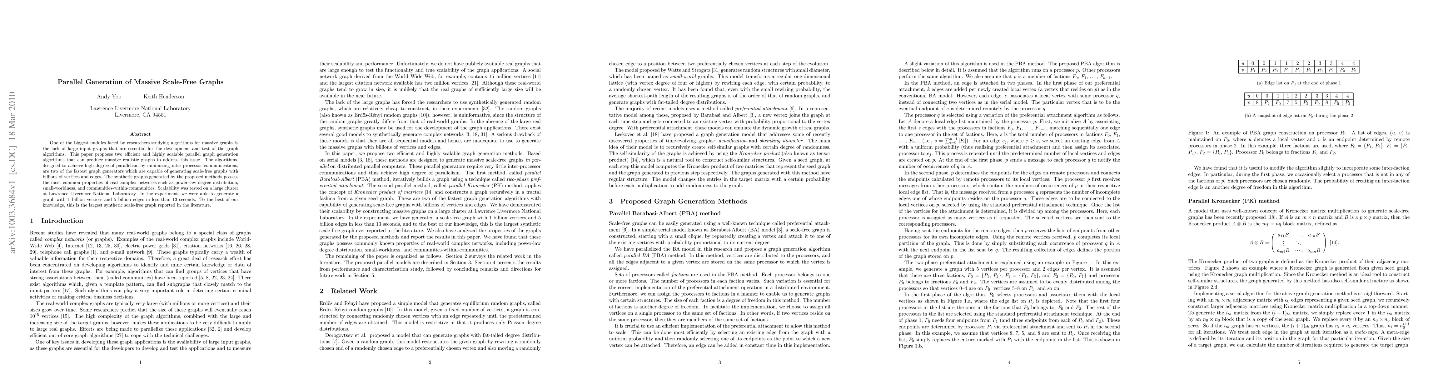 One of the biggest huddles faced by researchers studying algorithms for massive graphs is the lack of large input graphs that are essential for the development and test of the graph algorithms. This paper proposes two efficient and highly scalable parallel graph generation algorithms that can produce massive realistic graphs to address this issue. The algorithms, designed to achieve high degree of parallelism by minimizing inter-processor communications, are two of the fastest graph generators which are capable of generating scale-free graphs with billions of vertices and edges. The synthetic graphs generated by the proposed methods possess the most common properties of real complex networks such as power-law degree distribution, small-worldness, and communities-within-communities. Scalability was tested on a large cluster at Lawrence Livermore National Laboratory. In the experiment, we were able to generate a graph with 1 billion vertices and 5 billion edges in less than 13 seconds. To the best of our knowledge, this is the largest synthetic scale-free graph reported in the literature.