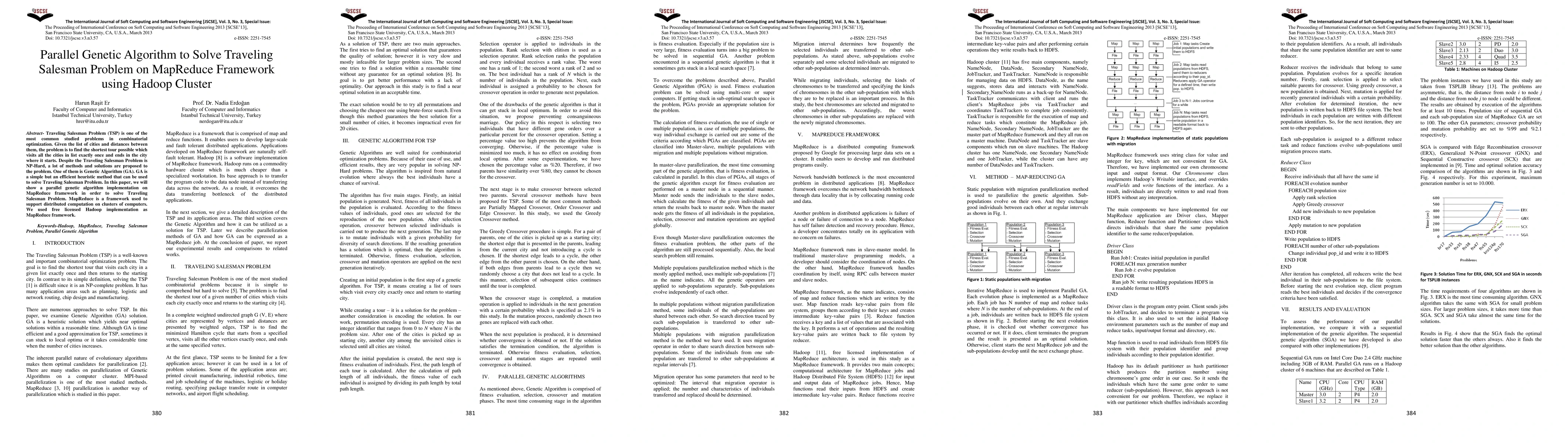 This paper presents a parallel genetic algorithm implemented on the Hadoop MapReduce framework to solve the NP-Hard Traveling Salesman Problem. The approach leverages distributed computing to enhance the efficiency and scalability of solving the problem by processing data across a cluster of computers.