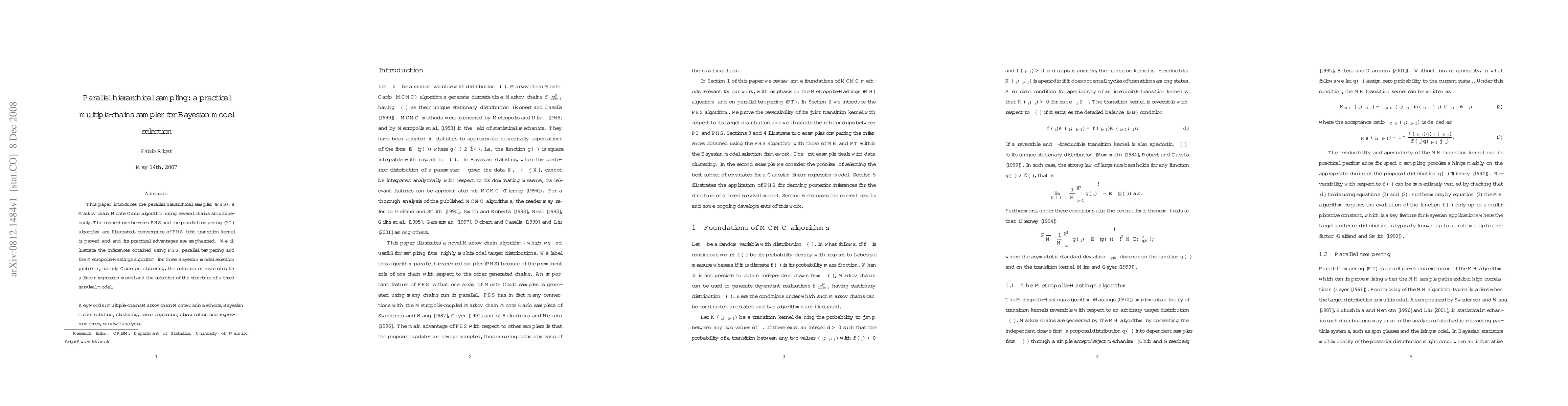 This paper presents the parallel hierarchical sampler (PHS), a multi-chain MCMC algorithm for Bayesian model selection, demonstrating its convergence and practical benefits over parallel tempering and the Metropolis-Hastings algorithm through three model selection problems.