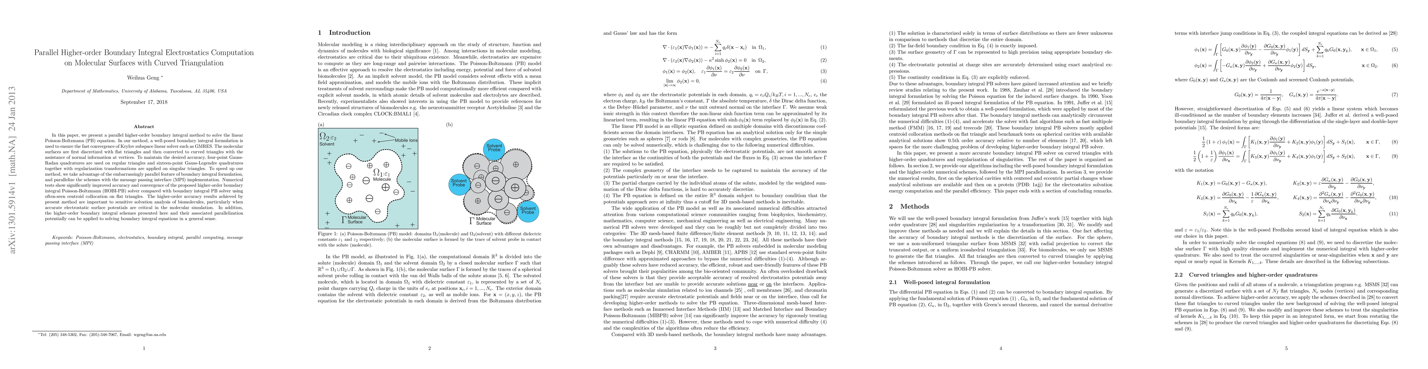 A parallel higher-order boundary integral method is presented for solving the Poisson-Boltzmann equation, achieving improved accuracy and convergence compared to existing methods, with potential applications in sensitive solvation analysis of biomolecules.