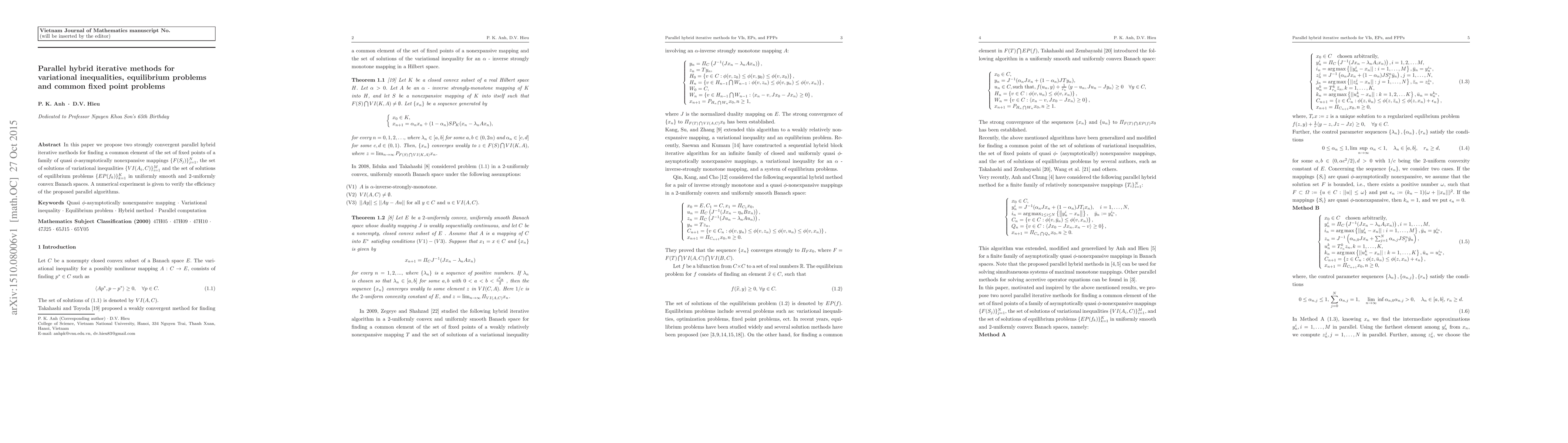 This paper proposes two parallel hybrid iterative methods for solving variational inequalities, equilibrium problems, and finding common fixed points in uniformly smooth and 2-uniformly convex Banach spaces. The methods are shown to be strongly convergent and a numerical experiment is provided to demonstrate their efficiency.