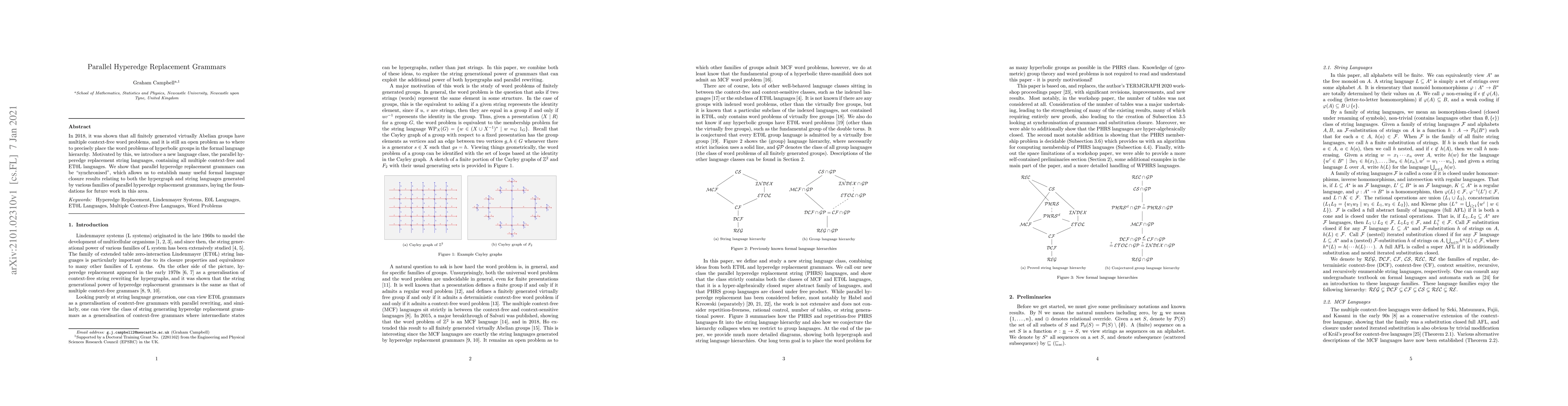 In 2018, it was shown that all finitely generated virtually Abelian groups have multiple context-free word problems, and it is still an open problem as to where to precisely place the word problems of hyperbolic groups in the formal language hierarchy. Motivated by this, we introduce a new language class, the parallel hyperedge replacement string languages, containing all multiple context-free and ET0L languages. We show that parallel hyperedge replacement grammars can be "synchronised", which allows us to establish many useful formal language closure results relating to both the hypergraph and string languages generated by various families of parallel hyperedge replacement grammars, laying the foundations for future work in this area.
