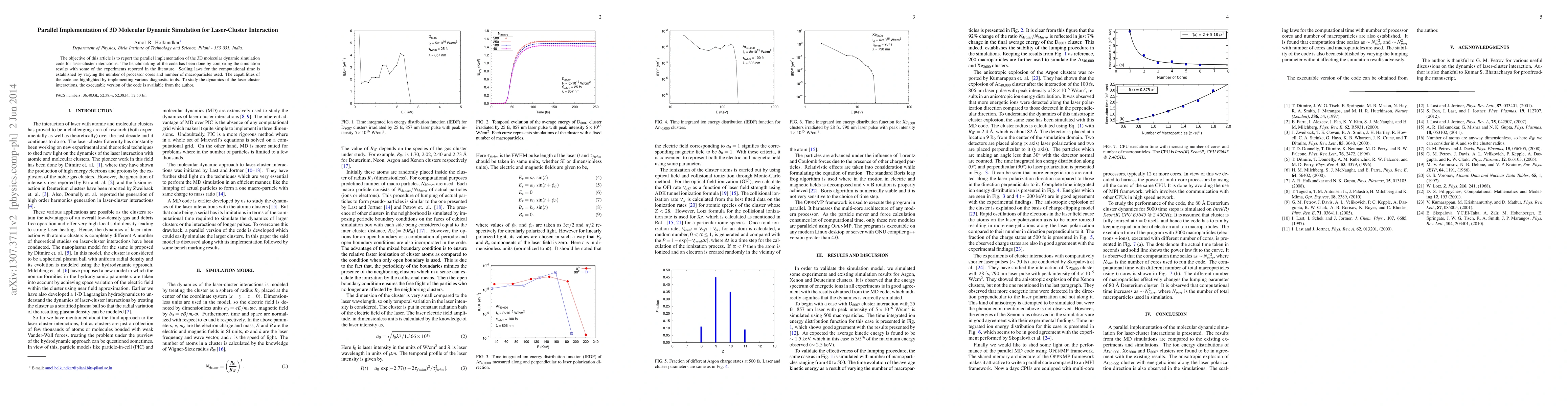 Researchers developed a parallel 3D molecular dynamic simulation code to study laser-cluster interactions, achieving scalability and diagnostic capabilities through benchmarking and diagnostic tools.