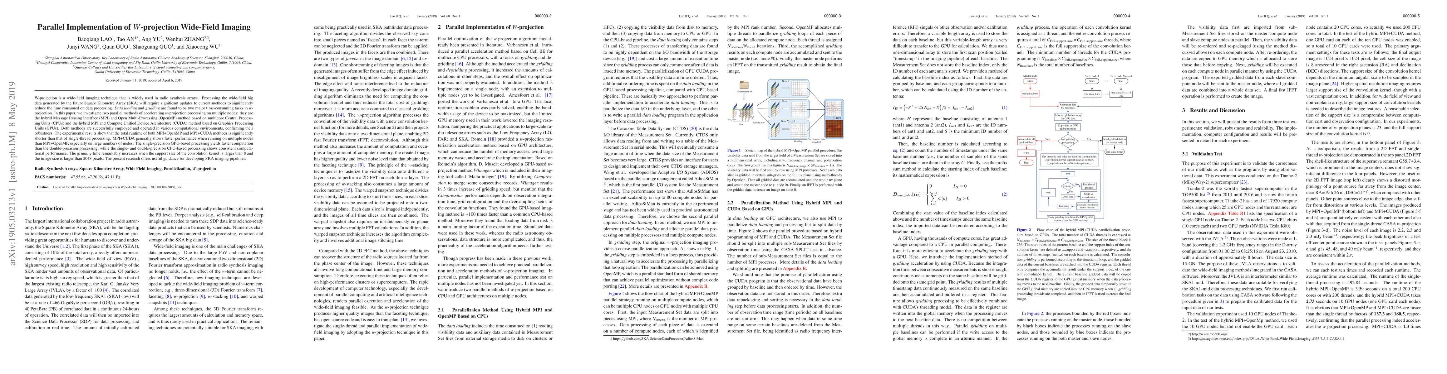 This paper explores parallel implementations of w-projection wide-field imaging to expedite data processing for the future Square Kilometre Array (SKA). It compares hybrid MPI and OpenMP methods for multicore CPUs and MPI with CUDA for GPUs, demonstrating significant runtime reductions and faster performance with GPU-based processing, especially on large node counts.