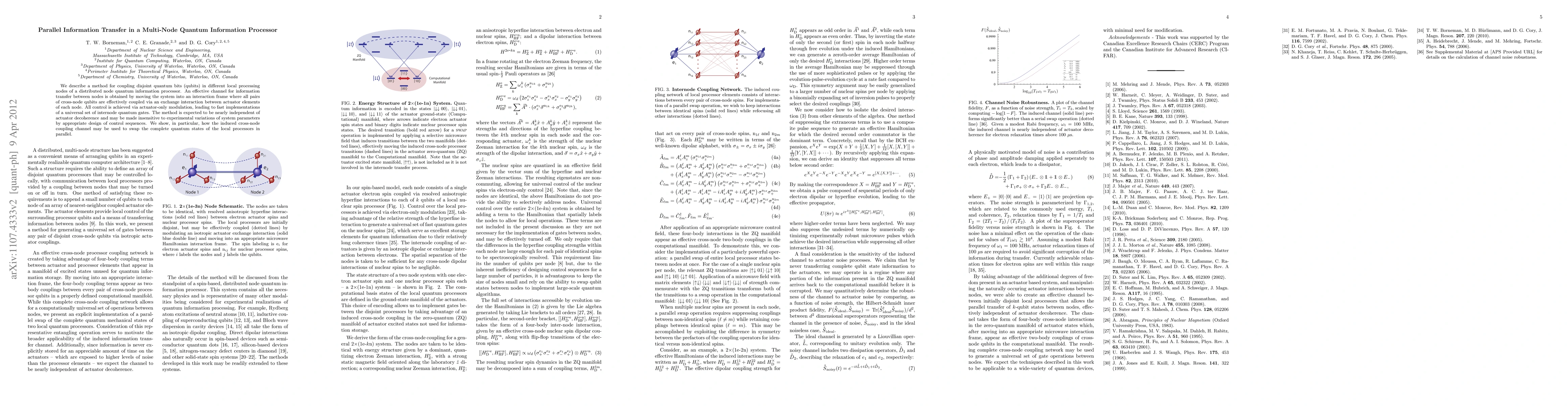 This paper proposes a method for coupling qubits across different nodes in a distributed quantum processor, enabling parallel information transfer through an interaction frame. The approach uses actuator-only modulation to achieve control, implement universal quantum gates, and swap quantum states between nodes, with robustness against decoherence and parameter variations.