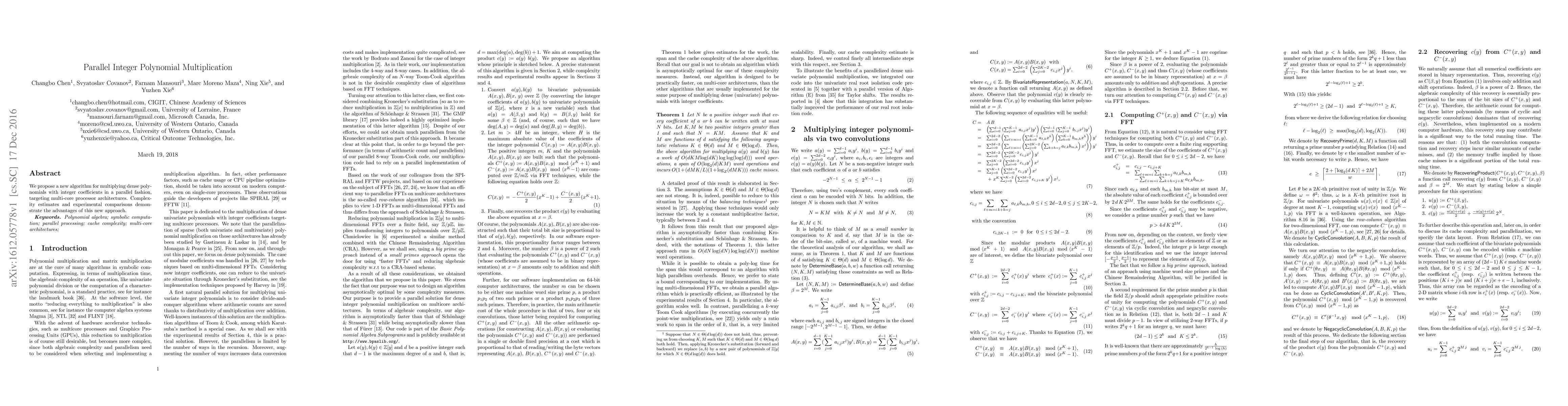 We propose a new algorithm for multiplying dense polynomials with integer coefficients in a parallel fashion, targeting multi-core processor architectures. Complexity estimates and experimental comparisons demonstrate the advantages of this new approach.