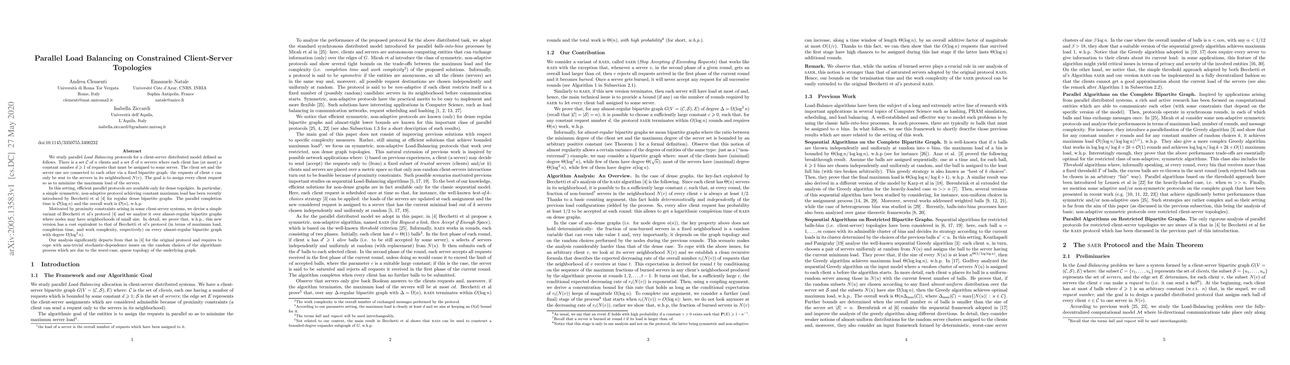 Researchers developed a parallel load balancing protocol for client-server systems with proximity constraints, improving efficiency on almost-regular bipartite graphs with degree Omega(log^2 n).