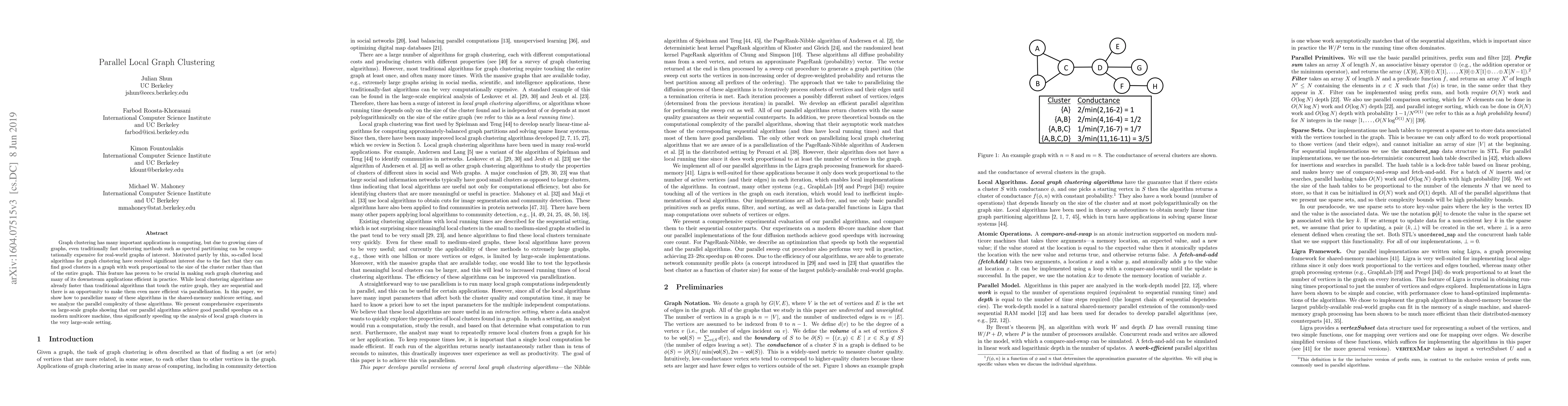This paper proposes parallelization strategies for local graph clustering algorithms to enhance efficiency on large-scale graphs. The authors analyze the parallel complexity and demonstrate significant speedups on multicore machines through comprehensive experiments.