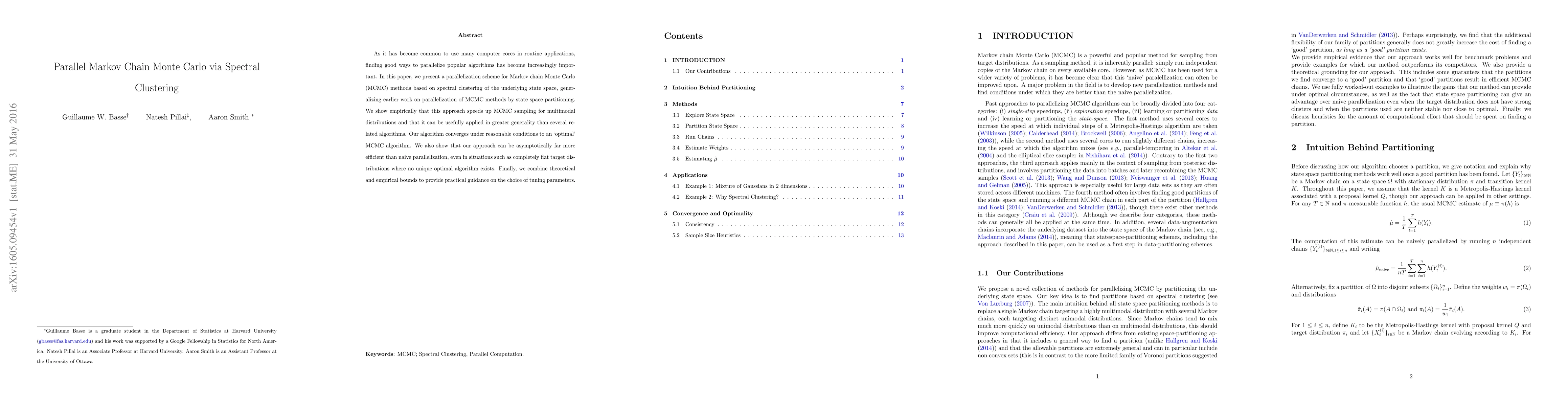 Researchers developed a new way to parallelize Markov chain Monte Carlo methods using spectral clustering, which can speed up sampling for multimodal distributions and outperform naive approaches.