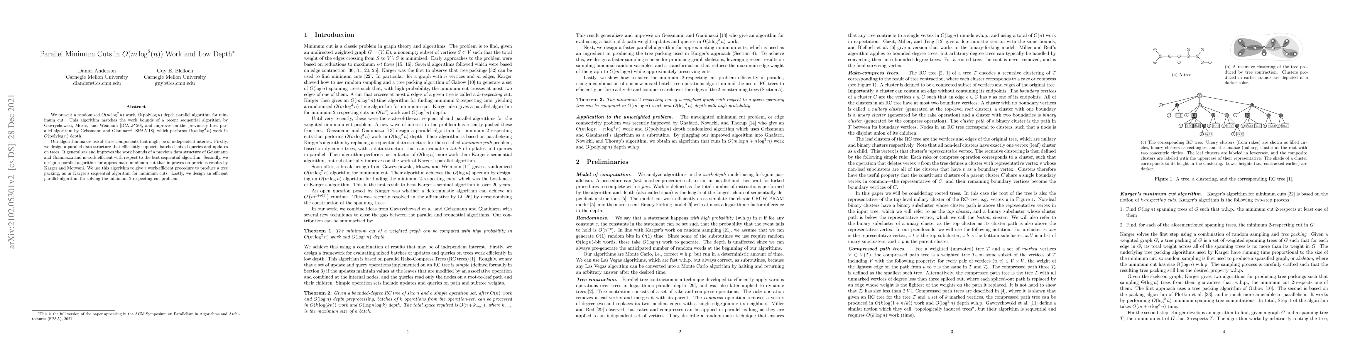 This paper presents a parallel algorithm achieving $O(m \log^2 n)$ work and $O(\text{polylog } n)$ depth for minimum cuts, surpassing previous parallel work bounds. It introduces three novel components: an efficient parallel data structure, an improved parallel approximate minimum cut algorithm, and a parallel solution for the minimum $2$-respecting cut problem.