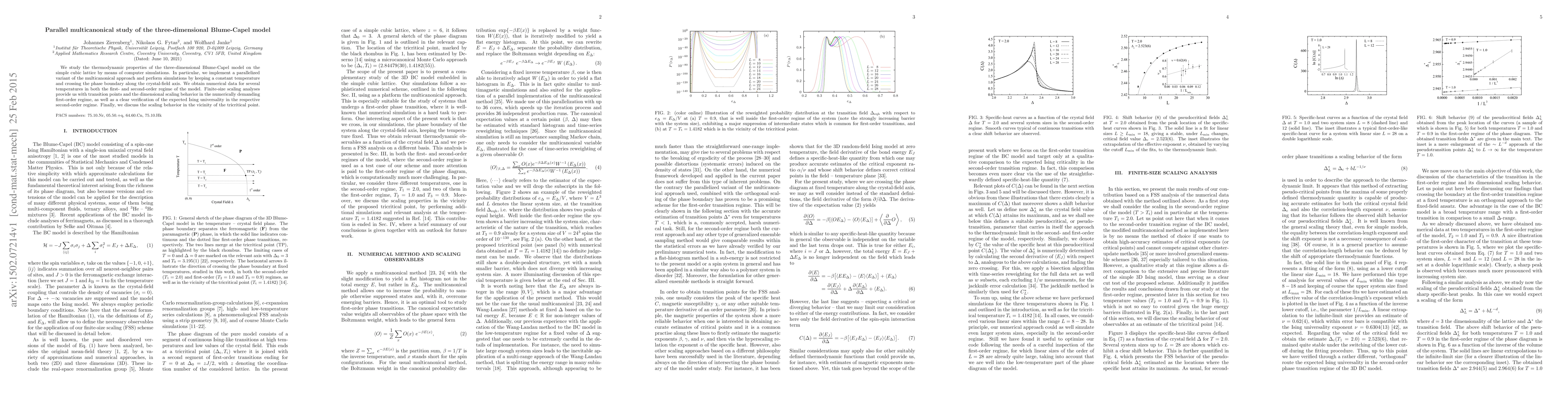 This study employs parallelized multicanonical simulations to investigate the thermodynamic properties of the three-dimensional Blume-Capel model, obtaining transition points and verifying Ising universality in the second-order regime while analyzing scaling behavior near the tricritical point. Finite-size scaling analyses reveal dimensional scaling in the first-order regime.