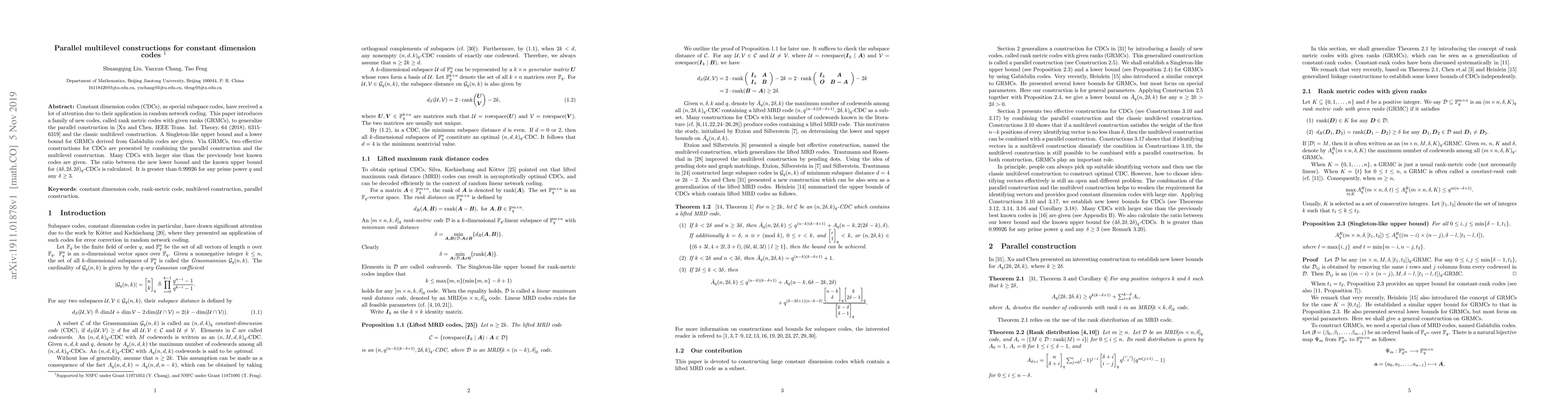 A new family of codes, rank metric codes with given ranks (GRMCs), is introduced to generalize parallel and multilevel constructions for constant dimension codes, leading to larger size codes with improved ratios.