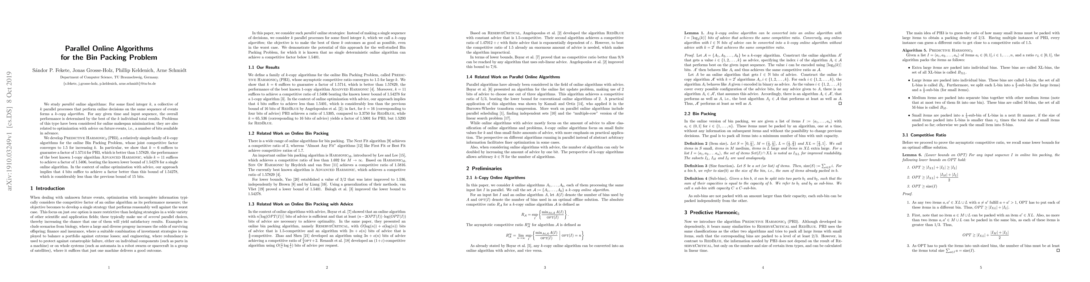 We study \emph{parallel} online algorithms: For some fixed integer $k$, a collective of $k$ parallel processes that perform online decisions on the same sequence of events forms a $k$-\emph{copy algorithm}. For any given time and input sequence, the overall performance is determined by the best of the $k$ individual total results. Problems of this type have been considered for online makespan minimization; they are also related to optimization with \emph{advice} on future events, i.e., a number of bits available in advance. We develop \textsc{Predictive Harmonic}$_3$ (PH3), a relatively simple family of $k$-copy algorithms for the online Bin Packing Problem, whose joint competitive factor converges to 1.5 for increasing $k$. In particular, we show that $k=6$ suffices to guarantee a factor of $1.5714$ for PH3, which is better than $1.57829$, the performance of the best known 1-copy algorithm \textsc{Advanced Harmonic}, while $k=11$ suffices to achieve a factor of $1.5406$, beating the known lower bound of $1.54278$ for a single online algorithm. In the context of online optimization with advice, our approach implies that 4 bits suffice to achieve a factor better than this bound of $1.54278$, which is considerably less than the previous bound of 15 bits.