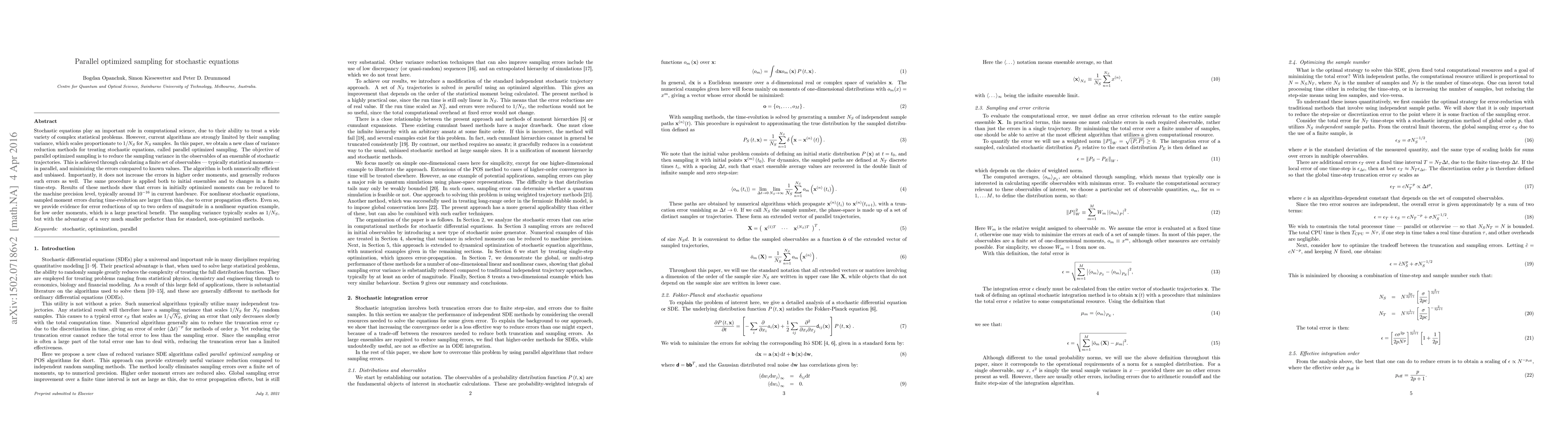 This paper introduces a new method called parallel optimized sampling to reduce errors in stochastic equations, achieving significant improvements in accuracy with minimal computational overhead.