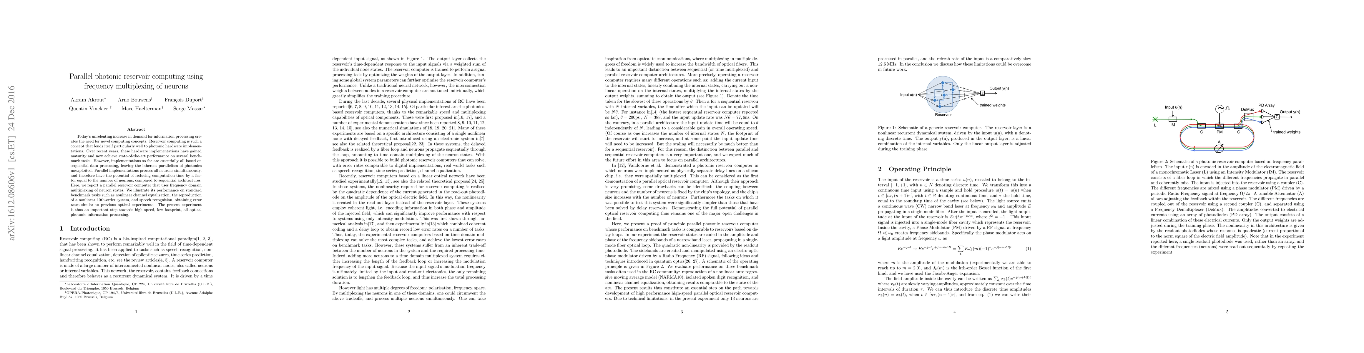 This paper introduces a parallel photonic reservoir computer utilizing frequency multiplexing for simultaneous neuron processing, demonstrating its effectiveness on tasks like channel equalization and speech recognition. This approach leverages the inherent parallelism of photonics to potentially reduce computation time significantly compared to sequential architectures.