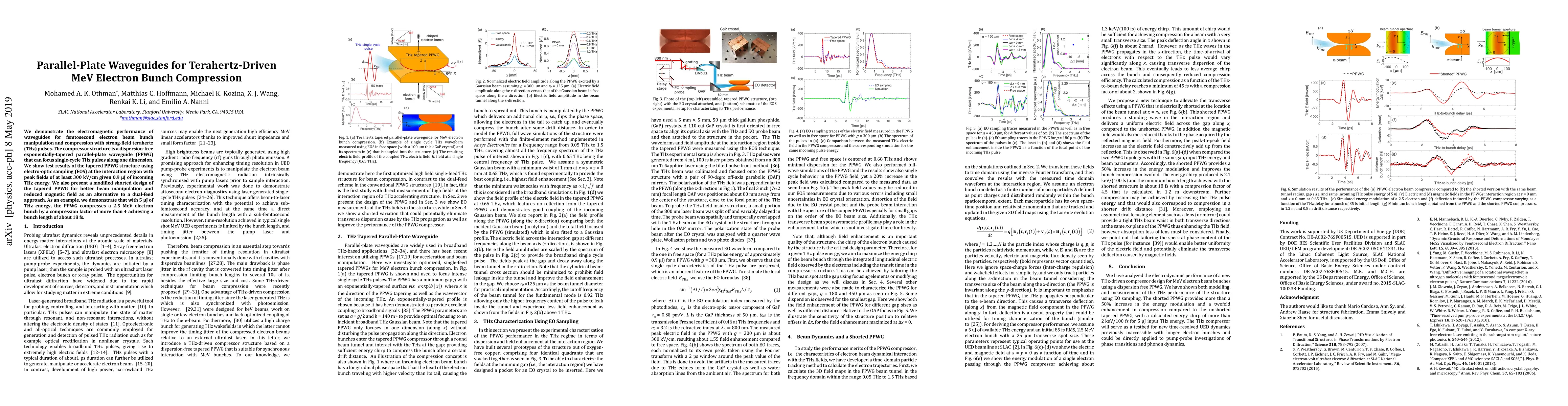 This paper demonstrates the use of exponentially-tapered parallel-plate waveguides for compressing MeV electron bunches using terahertz pulses, achieving a compression factor of over 4 with 5 uJ of THz energy, and presents a modified shorted design for improved performance. Test results show peak fields of 300 kV/cm using 0.9 uJ of THz energy.