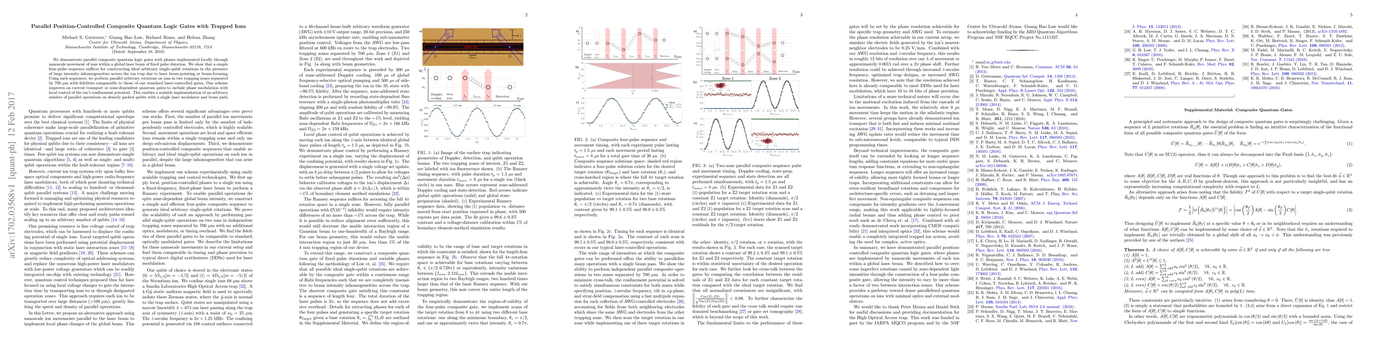 This paper presents a method for parallel composite quantum logic gates using trapped ions, where phases are controlled via nanoscale ion movement within a fixed laser beam. The proposed four-pulse sequence allows for ideal single-qubit rotations despite large laser intensity variations, enabling scalable parallel operations on densely packed qubits with high fidelity.