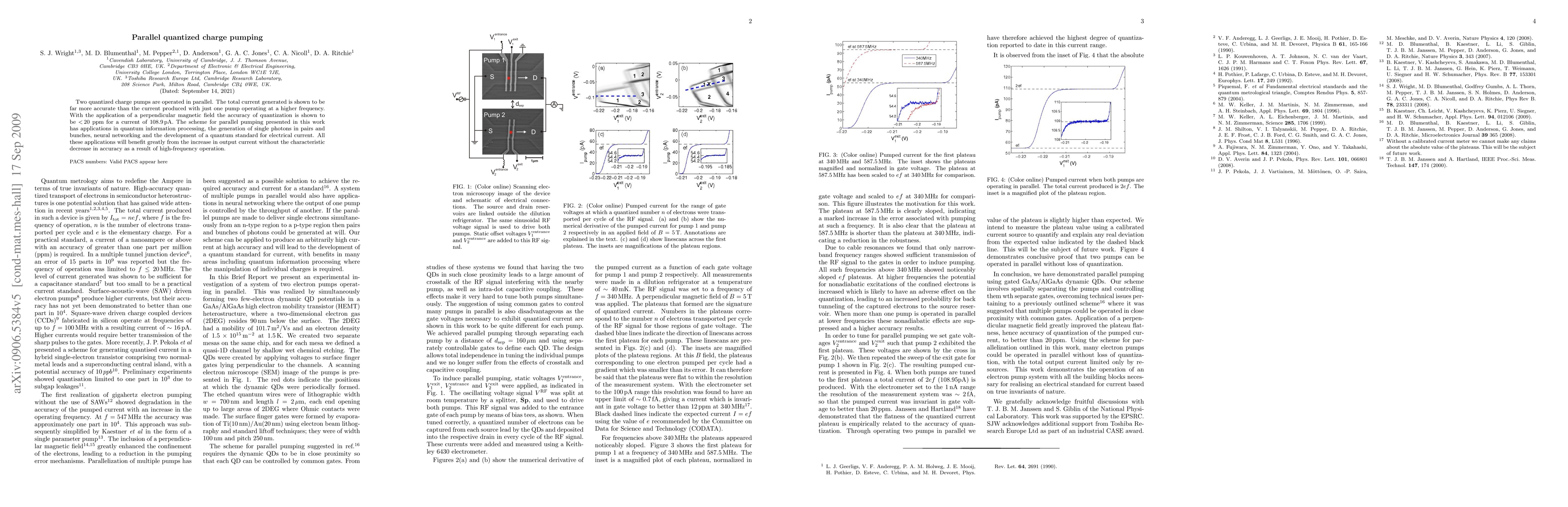 Two parallel quantized charge pumps increase output current accuracy without sacrificing it, with a 20 ppm error rate below 108.9 pA in perpendicular magnetic fields.