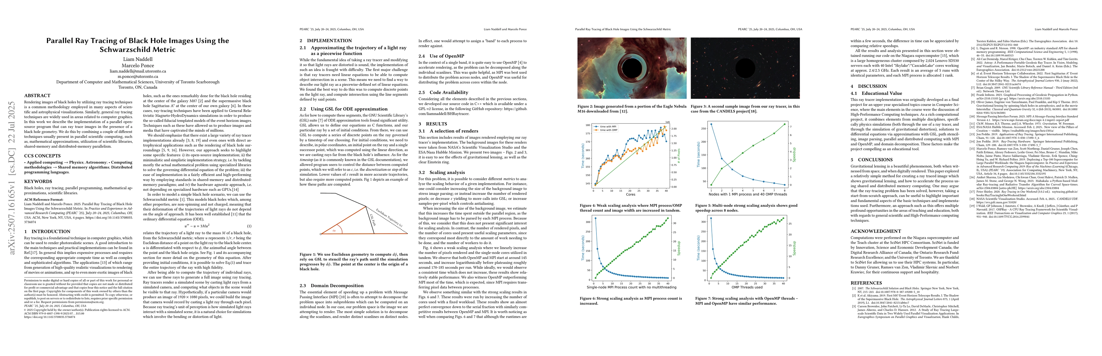 The main technical contribution is the development of a parallel, open-source ray tracing program for black hole images using the Schwarzschild metric, employing mathematical approximations, scientific libraries, and both shared-memory and distributed-memory parallelism.