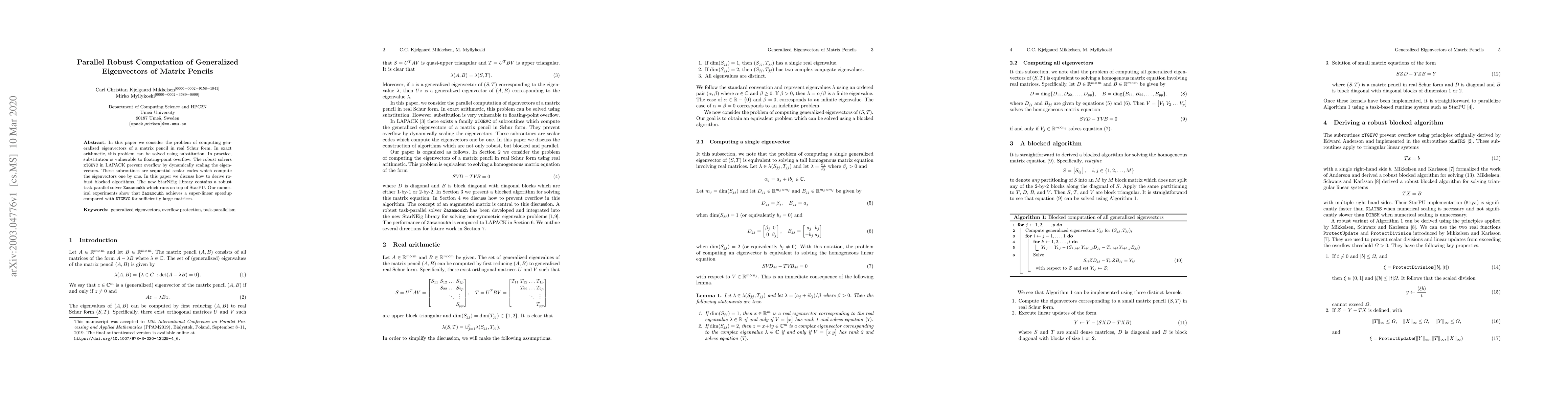 Researchers developed a parallel algorithm for robustly computing generalized eigenvectors of matrix pencils, achieving super-linear speedup on large matrices compared to sequential methods.