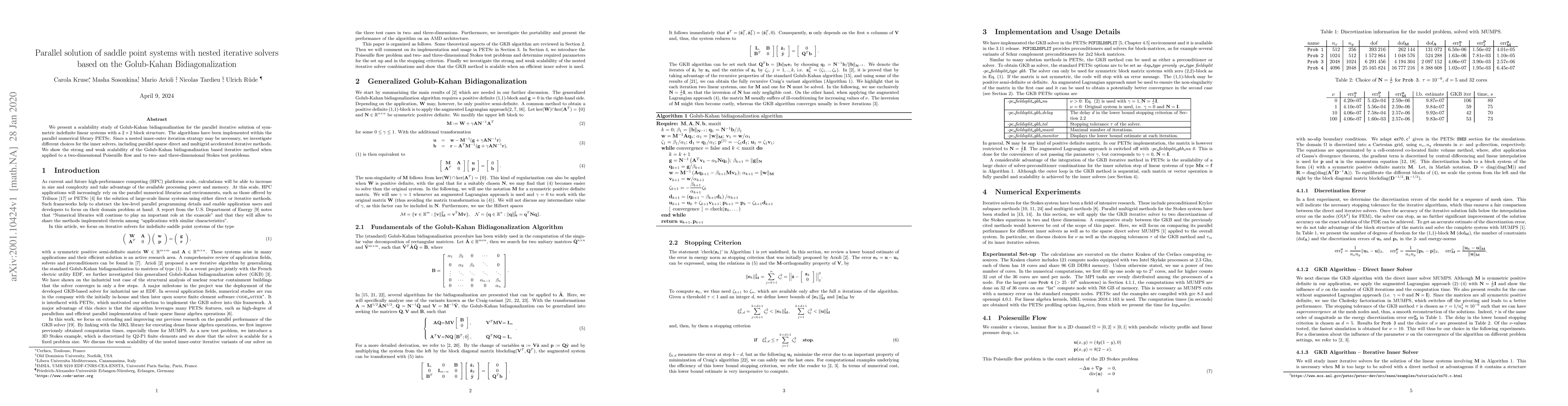 This paper investigates the scalability of parallel iterative solvers using Golub-Kahan bidiagonalization for symmetric indefinite linear systems with a 2x2 block structure, implemented in PETSc. It explores various inner solvers and demonstrates strong and weak scalability through Poiseuille flow and Stokes problems.