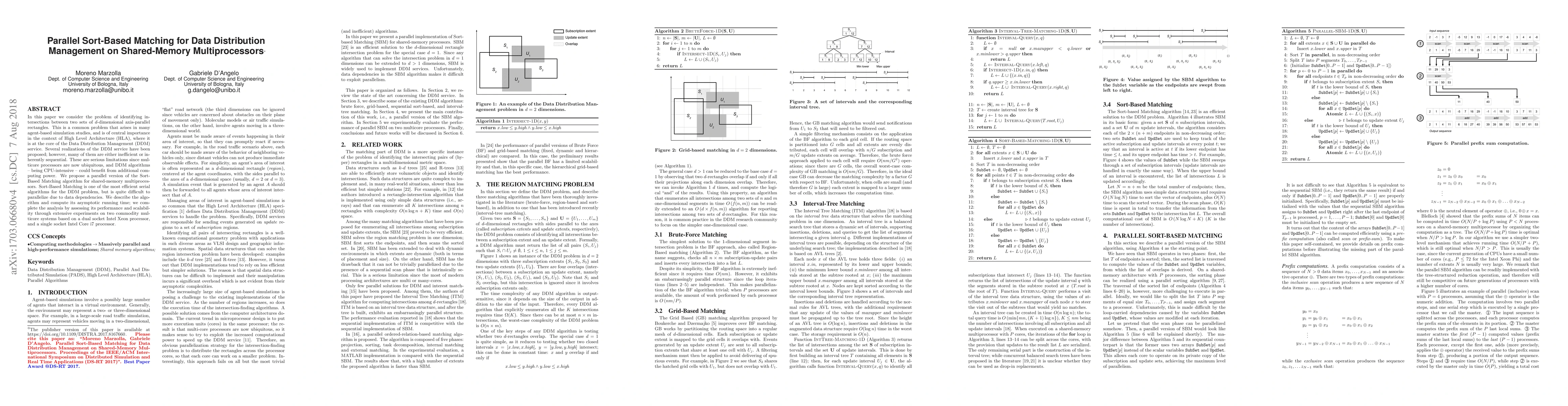 This paper proposes a parallel version of the Sort-Based Matching algorithm to efficiently manage Data Distribution Management (DDM) on shared-memory multiprocessors, addressing the challenge of intersecting d-dimensional axis-parallel rectangles. The performance and scalability of the algorithm are evaluated through experiments on multicore systems.