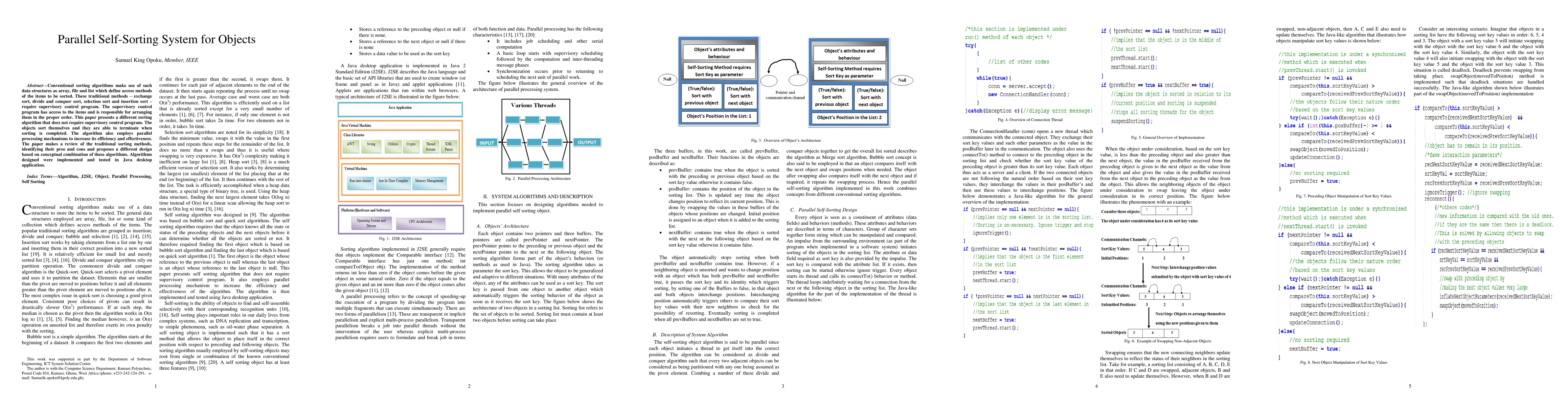 Conventional sorting algorithms make use of such data structures as array, file and list which define access methods of the items to be sorted. Such traditional methods as exchange sort, divide and conquer sort, selection sort and insertion sort require supervisory control program. The supervisory control program has access to the items and is responsible for arranging them in the proper order. This paper presents a different sorting algorithm that does not require supervisory control program. The objects sort themselves and they are able to terminate when sorting is completed. The algorithm also employs parallel processing mechanisms to increase its efficiency and effectiveness. The paper makes a review of the traditional sorting methods, identifying their pros and cons and proposes a different design based on conceptual combination of these algorithms. Algorithms designed were implemented and tested in Java desktop application