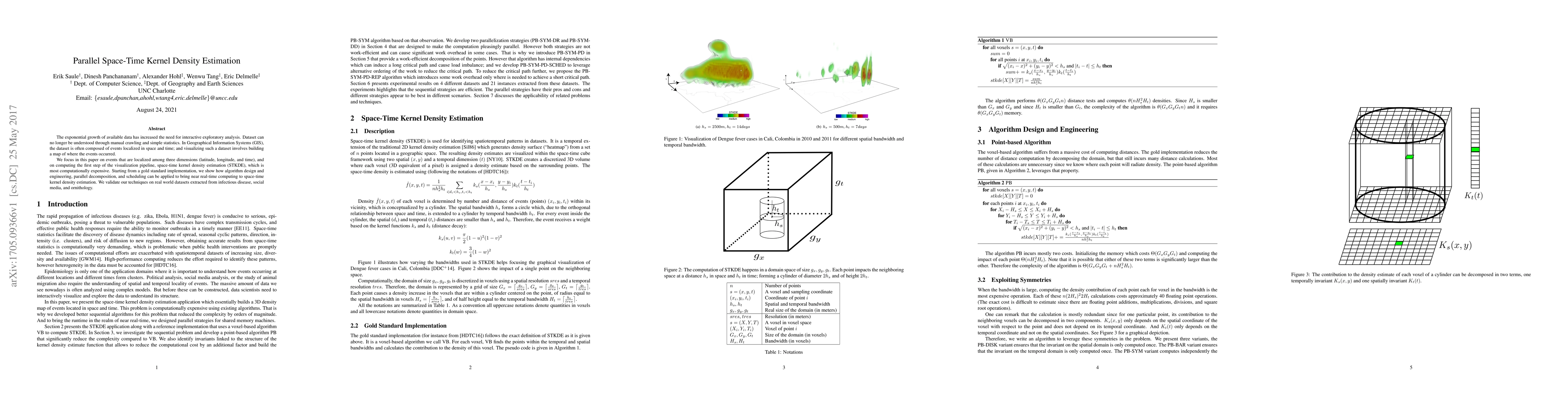 The exponential growth of available data has increased the need for interactive exploratory analysis. Dataset can no longer be understood through manual crawling and simple statistics. In Geographical Information Systems (GIS), the dataset is often composed of events localized in space and time; and visualizing such a dataset involves building a map of where the events occurred. We focus in this paper on events that are localized among three dimensions (latitude, longitude, and time), and on computing the first step of the visualization pipeline, space-time kernel density estimation (STKDE), which is most computationally expensive. Starting from a gold standard implementation, we show how algorithm design and engineering, parallel decomposition, and scheduling can be applied to bring near real-time computing to space-time kernel density estimation. We validate our techniques on real world datasets extracted from infectious disease, social media, and ornithology.