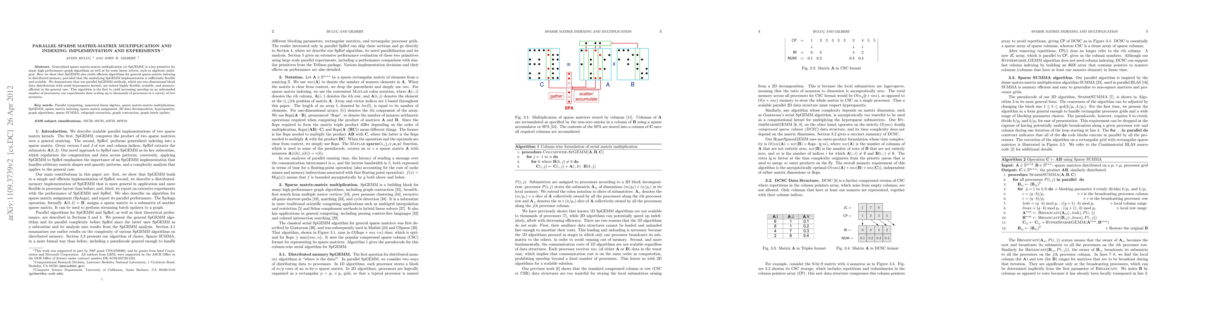 This paper presents a parallel implementation of sparse matrix-matrix multiplication (SpGEMM) that efficiently supports general sparse-matrix indexing in distributed memory. The proposed method scales up to thousands of processors, demonstrating increasing speedup and high flexibility and memory efficiency.