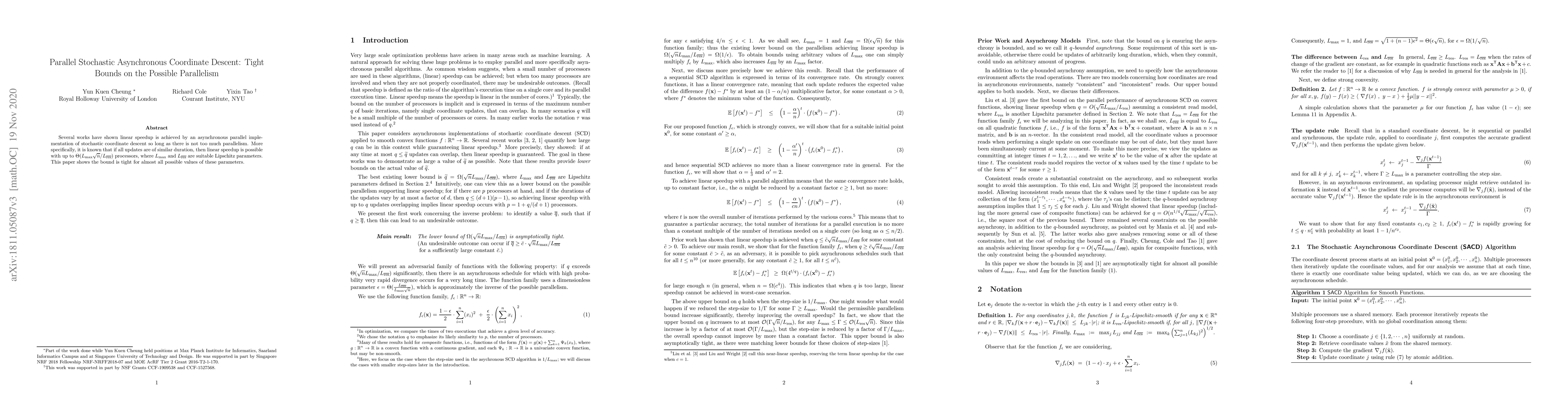 This paper demonstrates that the previously established linear speedup limit for parallel asynchronous stochastic coordinate descent is tight, confirming that up to $\Theta(\sqrt n L_{\max}/L_{\overline{\mathrm{res}}})$ processors can achieve this speedup under certain conditions. The findings provide a precise boundary on the achievable parallelism.