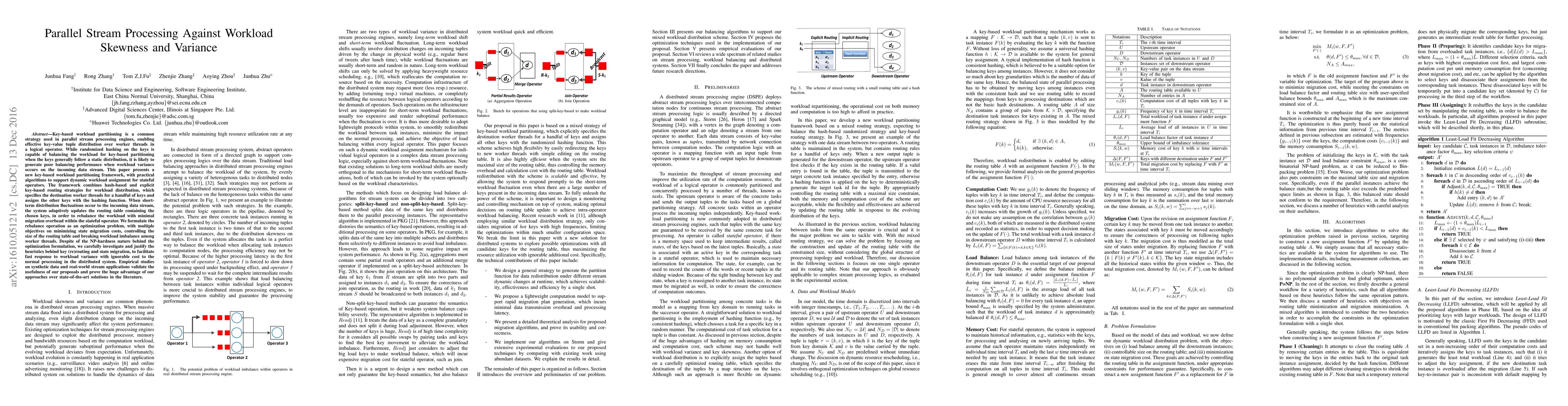 Key-based workload partitioning is a common strategy used in parallel stream processing engines, enabling effective key-value tuple distribution over worker threads in a logical operator. While randomized hashing on the keys is capable of balancing the workload for key-based partitioning when the keys generally follow a static distribution, it is likely to generate poor balancing performance when workload variance occurs on the incoming data stream. This paper presents a new key-based workload partitioning framework, with practical algorithms to support dynamic workload assignment for stateful operators. The framework combines hash-based and explicit key-based routing strategies for workload distribution, which specifies the destination worker threads for a handful of keys and assigns the other keys with the hashing function. When short-term distribution fluctuations occur to the incoming data stream, the system adaptively updates the routing table containing the chosen keys, in order to rebalance the workload with minimal migration overhead within the stateful operator. We formulate the rebalance operation as an optimization problem, with multiple objectives on minimizing state migration costs, controlling the size of the routing table and breaking workload imbalance among worker threads. Despite of the NP-hardness nature behind the optimization formulation, we carefully investigate and justify the heuristics behind key (re)routing and state migration, to facilitate fast response to workload variance with ignorable cost to the normal processing in the distributed system. Empirical studies on synthetic data and real-world stream applications validate the usefulness of our proposals and prove the huge advantage of our approaches over state-of-the-art solutions in the literature.