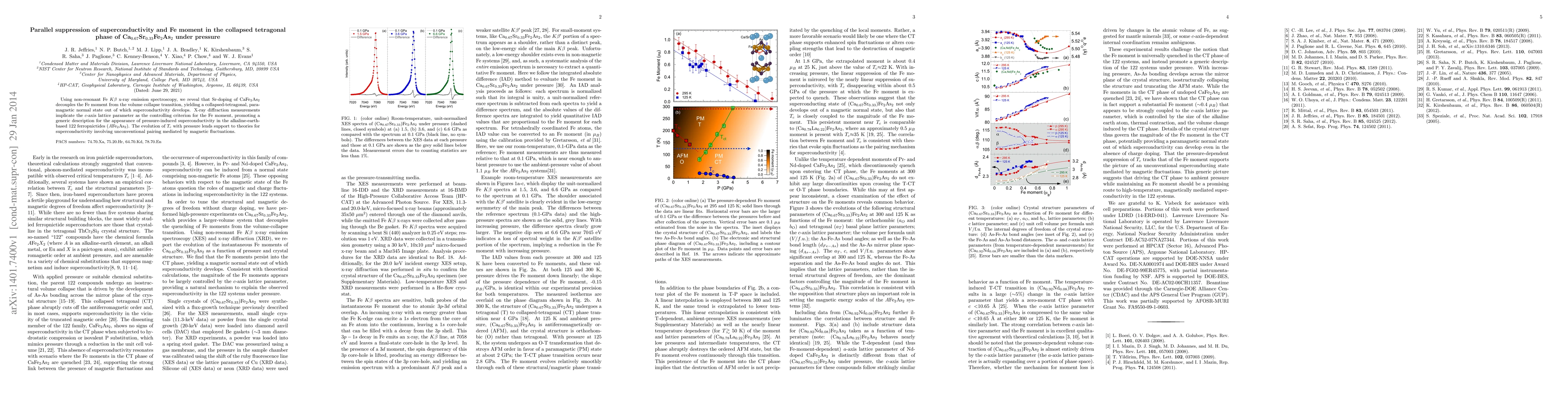 Using non-resonant Fe K-beta x-ray emission spectroscopy, we reveal that Sr-doping of CaFe2As2 decouples the Fe moment from the volume collapse transition, yielding a collapsed-tetragonal, paramagnetic normal state out of which superconductivity develops. X-ray diffraction measurements implicate the c-axis lattice parameter as the controlling criterion for the Fe moment, promoting a generic description for the appearance of pressure-induced superconductivity in the alkaline-earth-based 122 ferropnictides (AFe2As2). The evolution of the superconducting critical temperature with pressure lends support to theories for superconductivity involving unconventional pairing mediated by magnetic fluctuations.