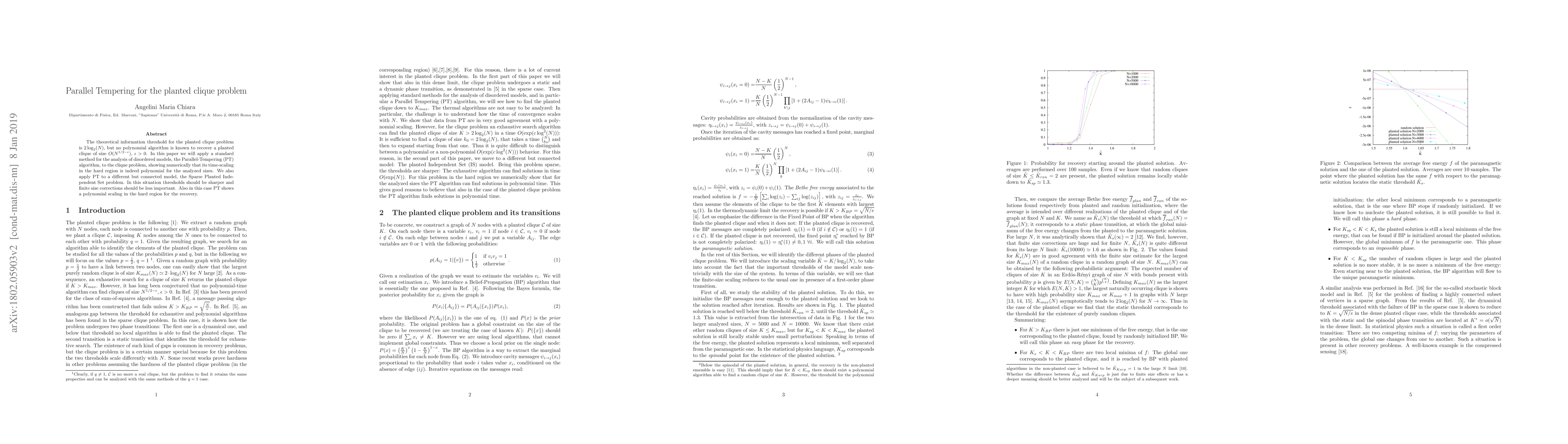 Researchers applied Parallel Tempering to the planted clique problem, finding polynomial time-scaling in the hard region for recovery of large cliques, contradicting current theoretical limits.