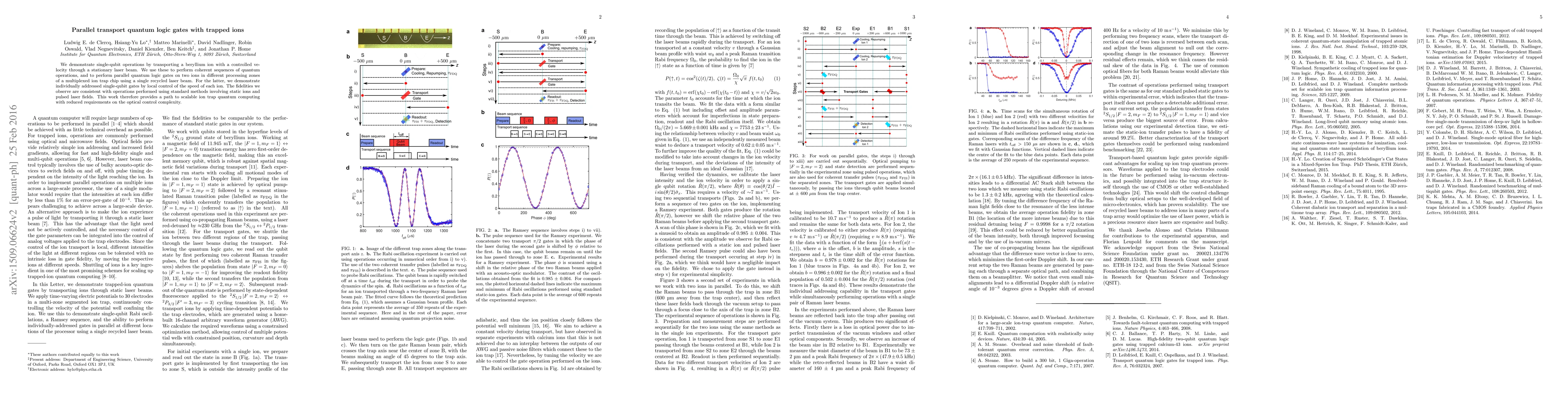 This paper demonstrates single-qubit operations using parallel transport of beryllium ions in a laser beam, enabling coherent sequences and parallel quantum logic gates on two ions. The method reduces optical control complexity, offering a scalable approach to ion trap quantum computing.