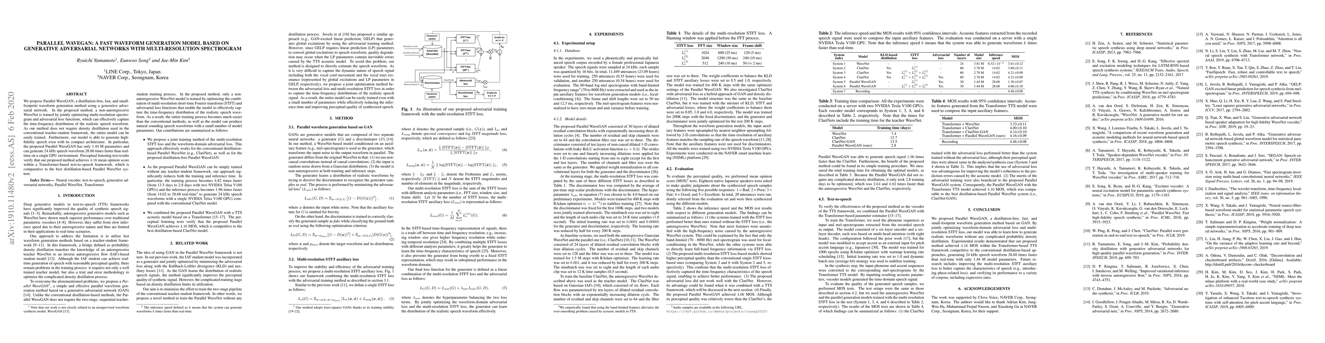 Parallel WaveGAN presents a fast, efficient waveform generation model using generative adversarial networks and multi-resolution spectrogram optimization, achieving high-fidelity speech synthesis with a compact architecture and significantly faster generation speeds compared to real-time. The model achieves competitive perceptual quality scores in text-to-speech applications.