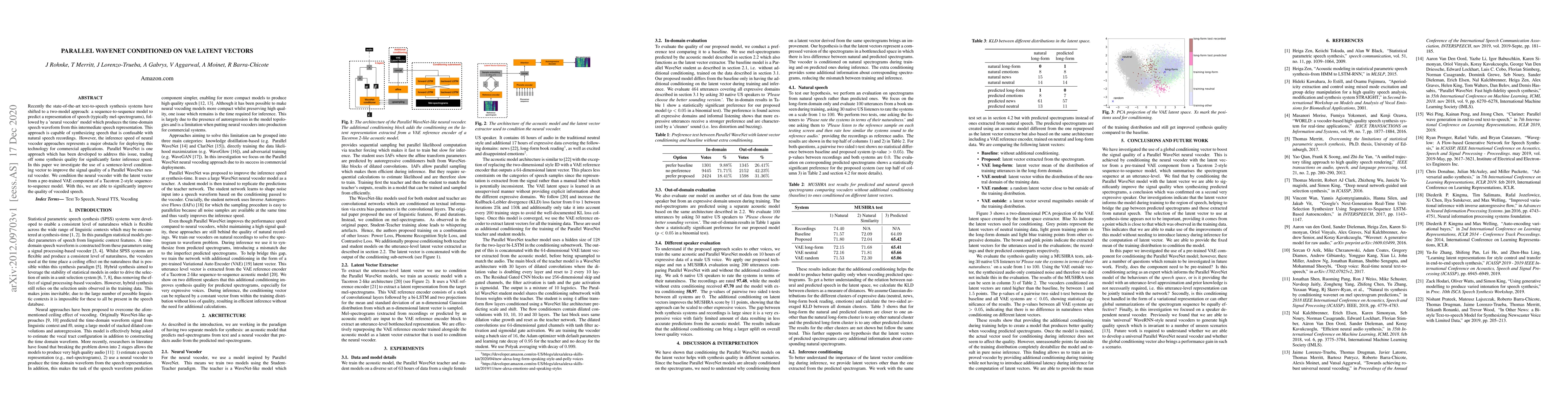 This paper explores enhancing the Parallel WaveNet neural vocoder with a latent vector from a pre-trained VAE in a Tacotron 2-style model, achieving better speech quality while maintaining the vocoder's faster inference speed.