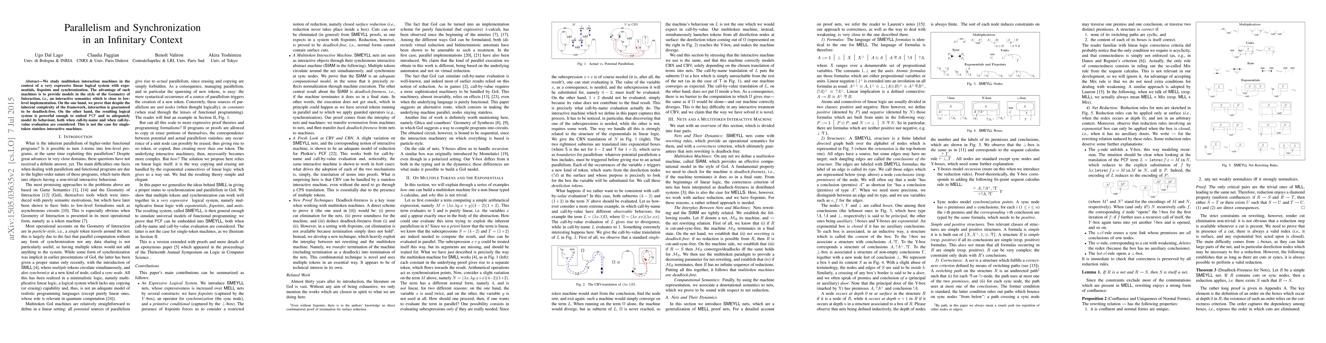 This research paper studies multitoken interaction machines for a powerful logical system with exponentials, fixpoints, and synchronization. It proves that the machines are deadlock-free and can model PCF behavior, making them suitable for low-level implementation.