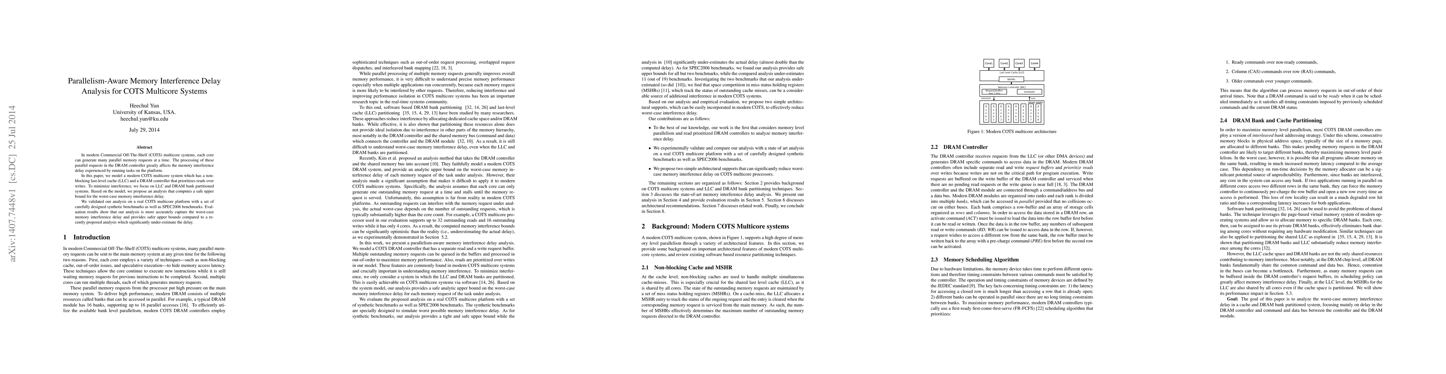 This paper models modern COTS multicore systems to analyze memory interference delay caused by parallel memory requests. It proposes an improved analysis method that computes a safe upper bound for worst-case interference delay, validated on a real platform with synthetic and SPEC2006 benchmarks, showing more accurate results compared to existing methods.