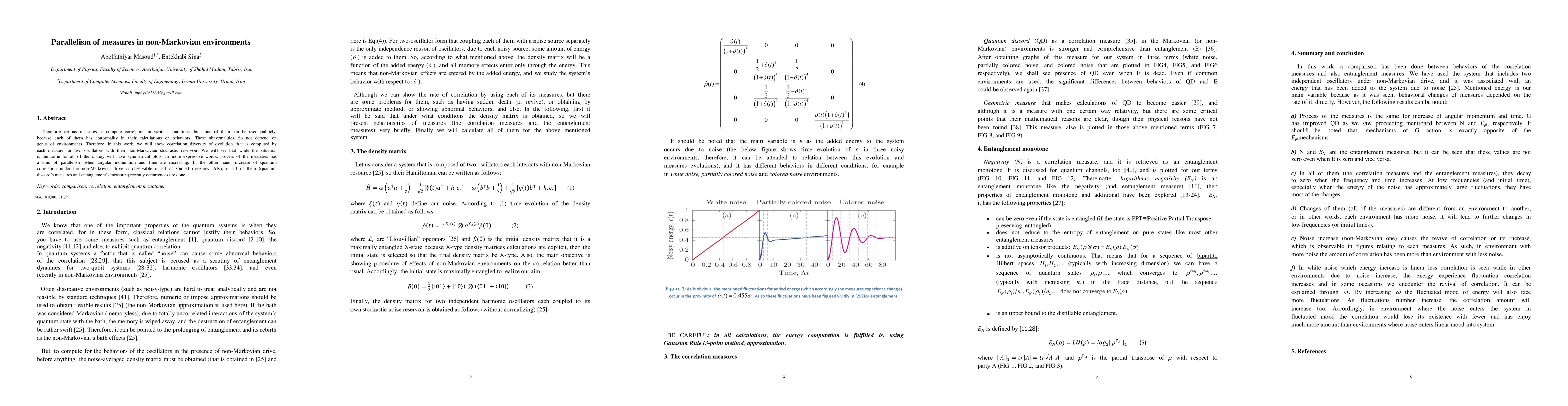 This paper investigates the correlation measures in non-Markovian environments, revealing that despite their individual abnormalities, they show symmetrical plots and a form of parallelism as angular momentum and time increase. The study observes an increase in quantum correlation under non-Markovian drives across all measures.