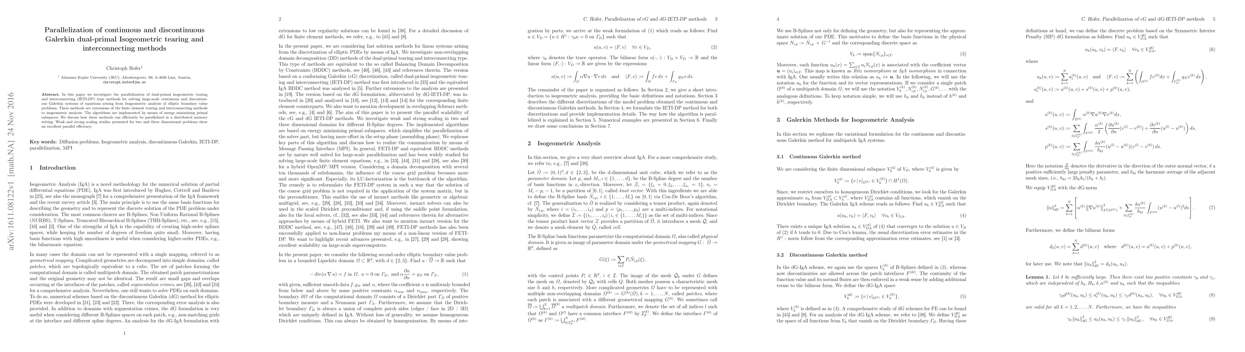 This paper explores the parallelization of dual-primal isogeometric tearing and interconnecting (IETI-DP) methods for large-scale continuous and discontinuous Galerkin systems. The study demonstrates excellent parallel efficiency through weak and strong scaling tests for 2D and 3D elliptic boundary value problems.