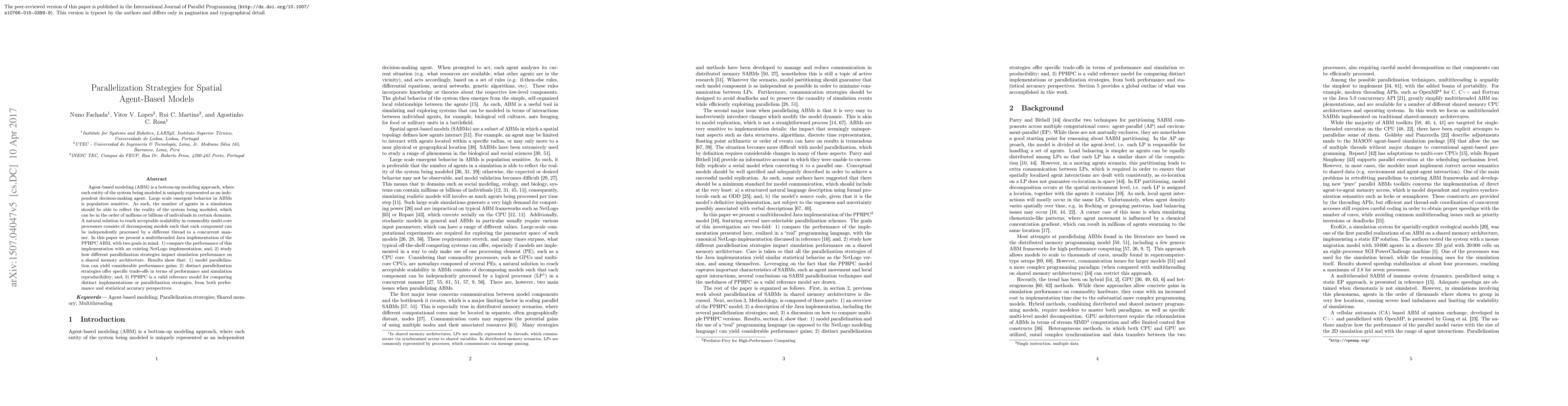 Agent-based modeling (ABM) is a bottom-up modeling approach, where each entity of the system being modeled is uniquely represented as an independent decision-making agent. Large scale emergent behavior in ABMs is population sensitive. As such, the number of agents in a simulation should be able to reflect the reality of the system being modeled, which can be in the order of millions or billions of individuals in certain domains. A natural solution to reach acceptable scalability in commodity multi-core processors consists of decomposing models such that each component can be independently processed by a different thread in a concurrent manner. In this paper we present a multithreaded Java implementation of the PPHPC ABM, with two goals in mind: 1) compare the performance of this implementation with an existing NetLogo implementation; and, 2) study how different parallelization strategies impact simulation performance on a shared memory architecture. Results show that: 1) model parallelization can yield considerable performance gains; 2) distinct parallelization strategies offer specific trade-offs in terms of performance and simulation reproducibility; and, 3) PPHPC is a valid reference model for comparing distinct implementations or parallelization strategies, from both performance and statistical accuracy perspectives.