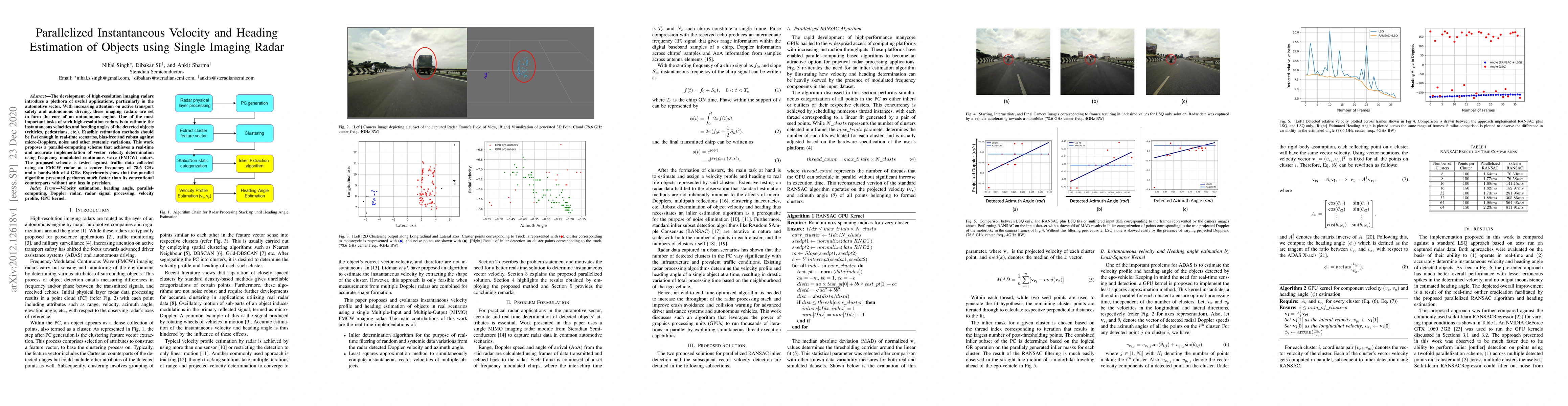 The development of high-resolution imaging radars introduce a plethora of useful applications, particularly in the automotive sector. With increasing attention on active transport safety and autonomous driving, these imaging radars are set to form the core of an autonomous engine. One of the most important tasks of such high-resolution radars is to estimate the instantaneous velocities and heading angles of the detected objects (vehicles, pedestrians, etc.). Feasible estimation methods should be fast enough in real-time scenarios, bias-free and robust against micro-Dopplers, noise and other systemic variations. This work proposes a parallel-computing scheme that achieves a real-time and accurate implementation of vector velocity determination using frequency modulated continuous wave (FMCW) radars. The proposed scheme is tested against traffic data collected using an FMCW radar at a center frequency of 78.6 GHz and a bandwidth of 4 GHz. Experiments show that the parallel algorithm presented performs much faster than its conventional counterparts without any loss in precision.