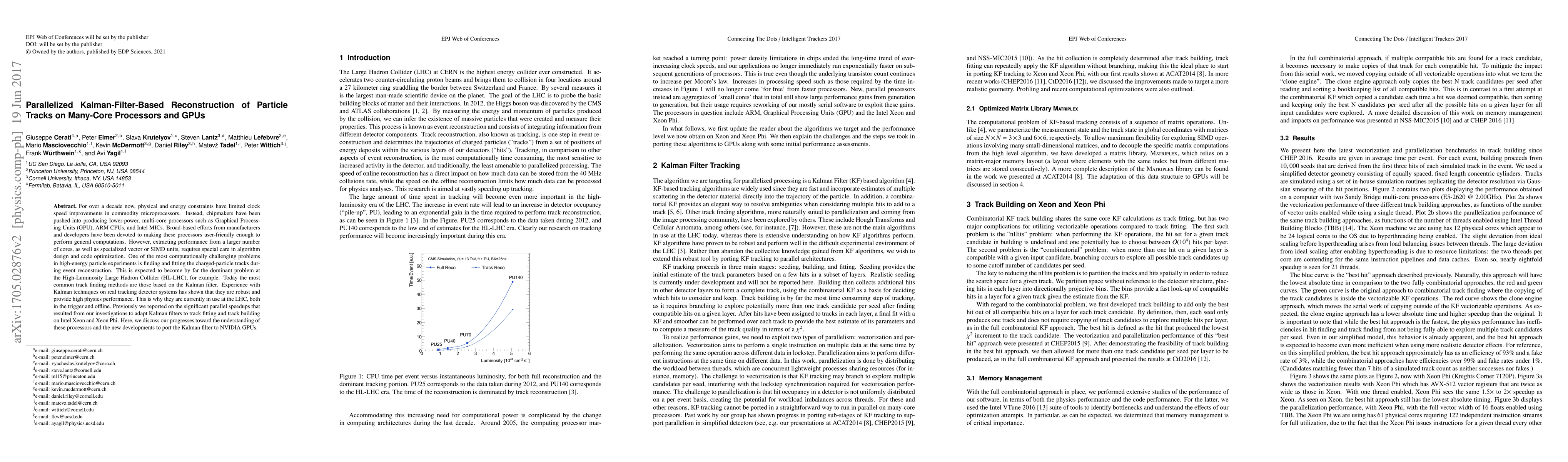 This paper explores the parallelization of Kalman-filter-based reconstruction algorithms for particle tracks on many-core processors and GPUs, focusing on optimizing performance for high-energy particle experiments. The authors report significant advancements in porting Kalman filters to NVIDIA GPUs, building on previous work with Intel processors, to address the computational challenges of event reconstruction in future collider experiments.