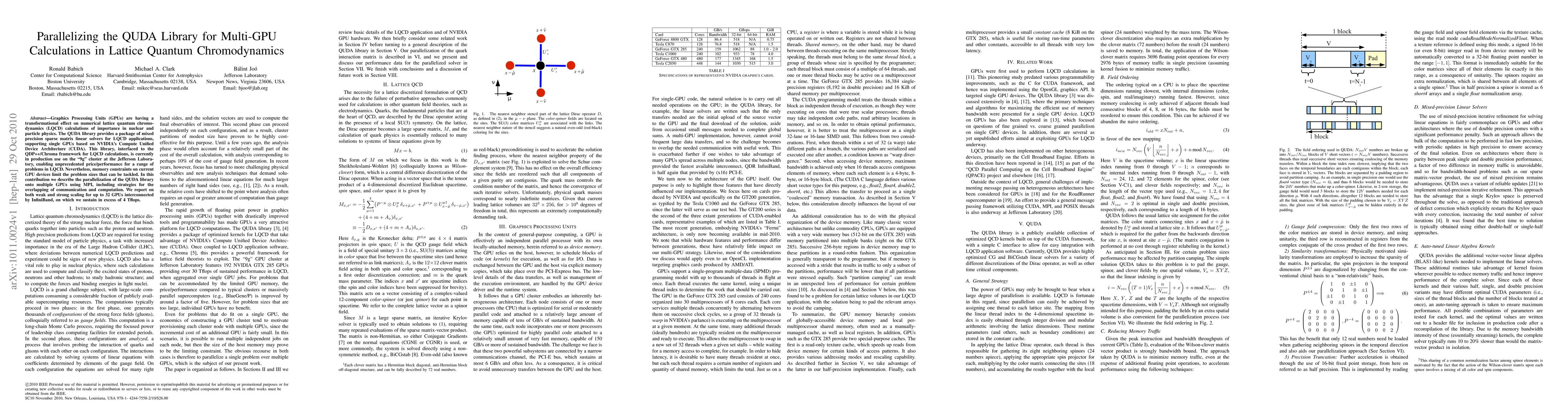 This paper details the parallelization of the QUDA library for multi-GPU calculations in lattice quantum chromodynamics, achieving over 4 Tflops performance on up to 32 GPUs using MPI, with strategies to overlap communication and computation to overcome memory constraints.
