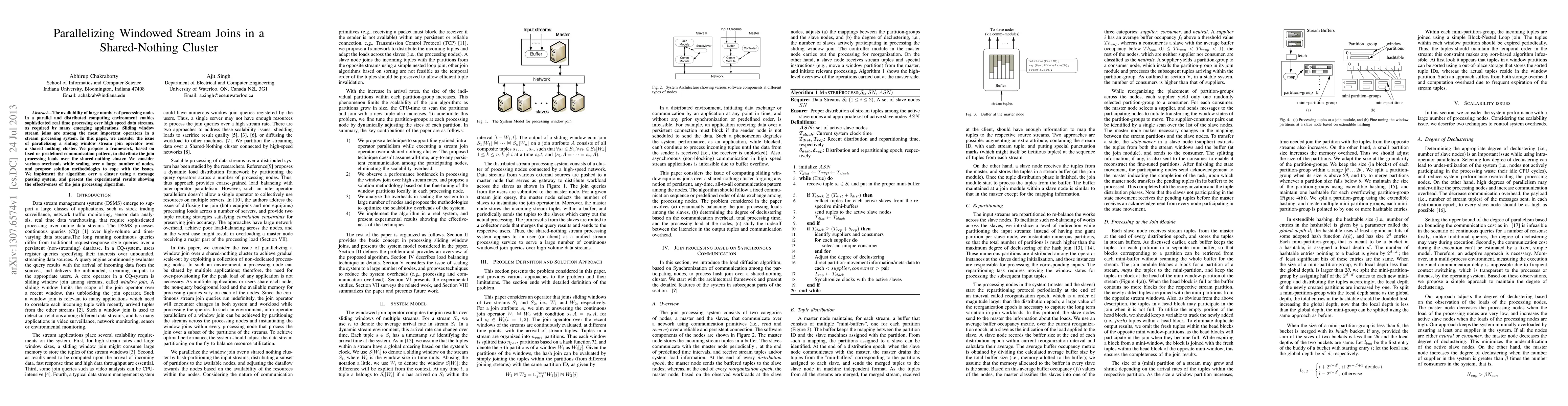 This paper proposes a framework for parallelizing sliding window stream joins in a shared-nothing cluster, aiming to balance processing loads across multiple nodes. Experimental results demonstrate the effectiveness of the proposed distributed join processing algorithm in handling large-scale data streams efficiently.