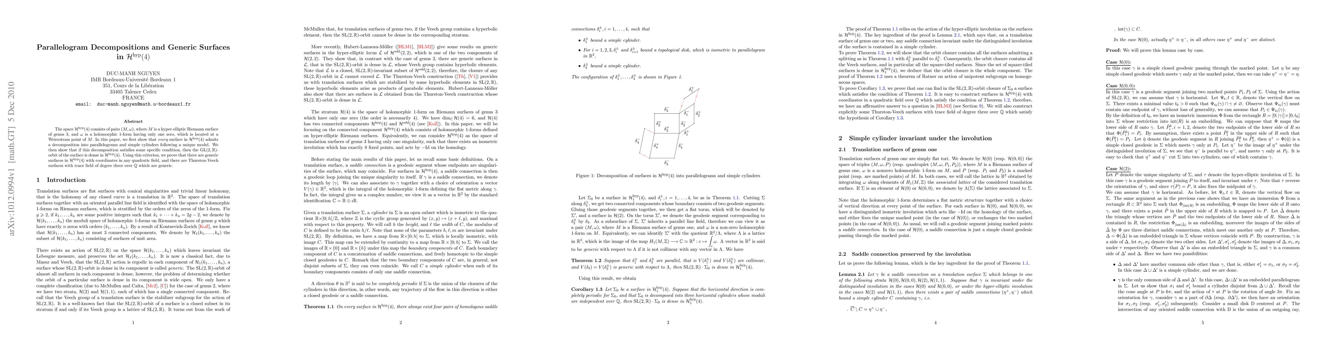 Researchers show that every surface in H^hyp(4) can be decomposed into unique parallelograms, leading to a better understanding of generic surfaces with specific properties.