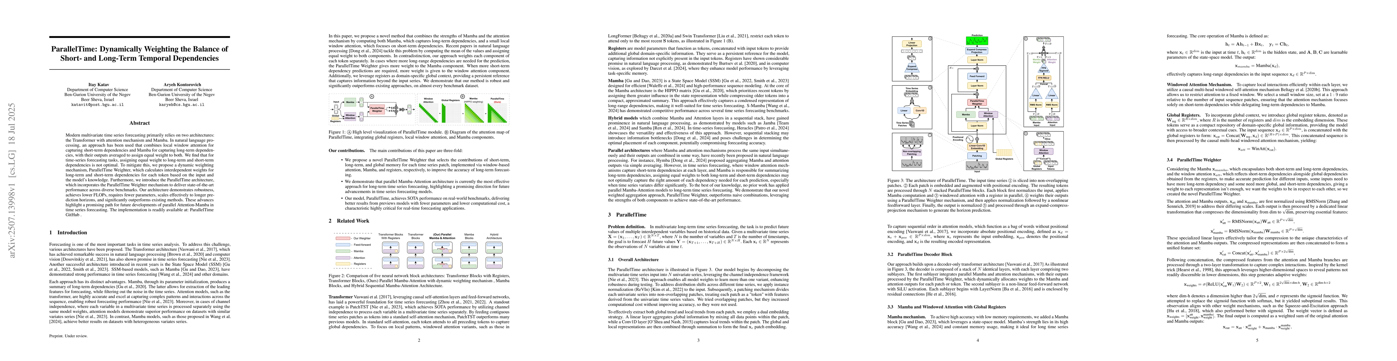 Modern multivariate time series forecasting primarily relies on two architectures: the Transformer with attention mechanism and Mamba. In natural language processing, an approach has been used that combines local window attention for capturing short-term dependencies and Mamba for capturing long-term dependencies, with their outputs averaged to assign equal weight to both. We find that for time-series forecasting tasks, assigning equal weight to long-term and short-term dependencies is not optimal. To mitigate this, we propose a dynamic weighting mechanism, ParallelTime Weighter, which calculates interdependent weights for long-term and short-term dependencies for each token based on the input and the model's knowledge. Furthermore, we introduce the ParallelTime architecture, which incorporates the ParallelTime Weighter mechanism to deliver state-of-the-art performance across diverse benchmarks. Our architecture demonstrates robustness, achieves lower FLOPs, requires fewer parameters, scales effectively to longer prediction horizons, and significantly outperforms existing methods. These advances highlight a promising path for future developments of parallel Attention-Mamba in time series forecasting. The implementation is readily available at: \href{https://github.com/itay1551/ParallelTime}{ParallelTime GitHub