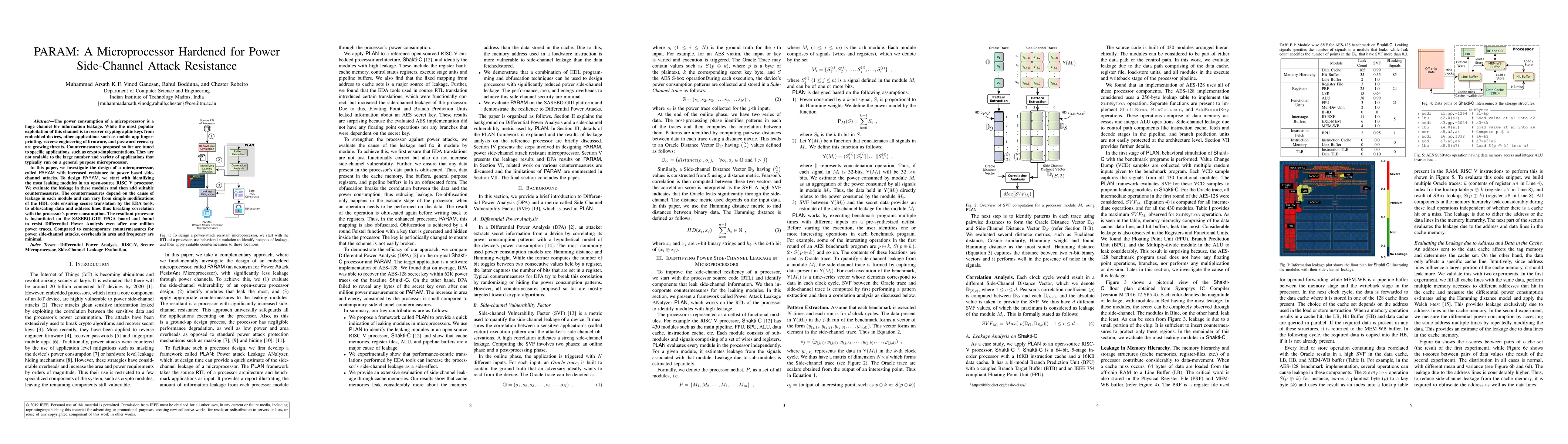 The power consumption of a microprocessor is a huge channel for information leakage. While the most popular exploitation of this channel is to recover cryptographic keys from embedded devices, other applications such as mobile app fingerprinting, reverse engineering of firmware, and password recovery are growing threats. Countermeasures proposed so far are tuned to specific applications, such as crypto-implementations. They are not scalable to the large number and variety of applications that typically run on a general purpose microprocessor. In this paper, we investigate the design of a microprocessor, called PARAM with increased resistance to power based side-channel attacks. To design PARAM, we start with identifying the most leaking modules in an open-source RISC V processor. We evaluate the leakage in these modules and then add suitable countermeasures. The countermeasures depend on the cause of leakage in each module and can vary from simple modifications of the HDL code ensuring secure translation by the EDA tools, to obfuscating data and address lines thus breaking correlation with the processor's power consumption. The resultant processor is instantiated on the SASEBO-GIII FPGA board and found to resist Differential Power Analysis even after one million power traces. Compared to contemporary countermeasures for power side-channel attacks, overheads in area and frequency are minimal.